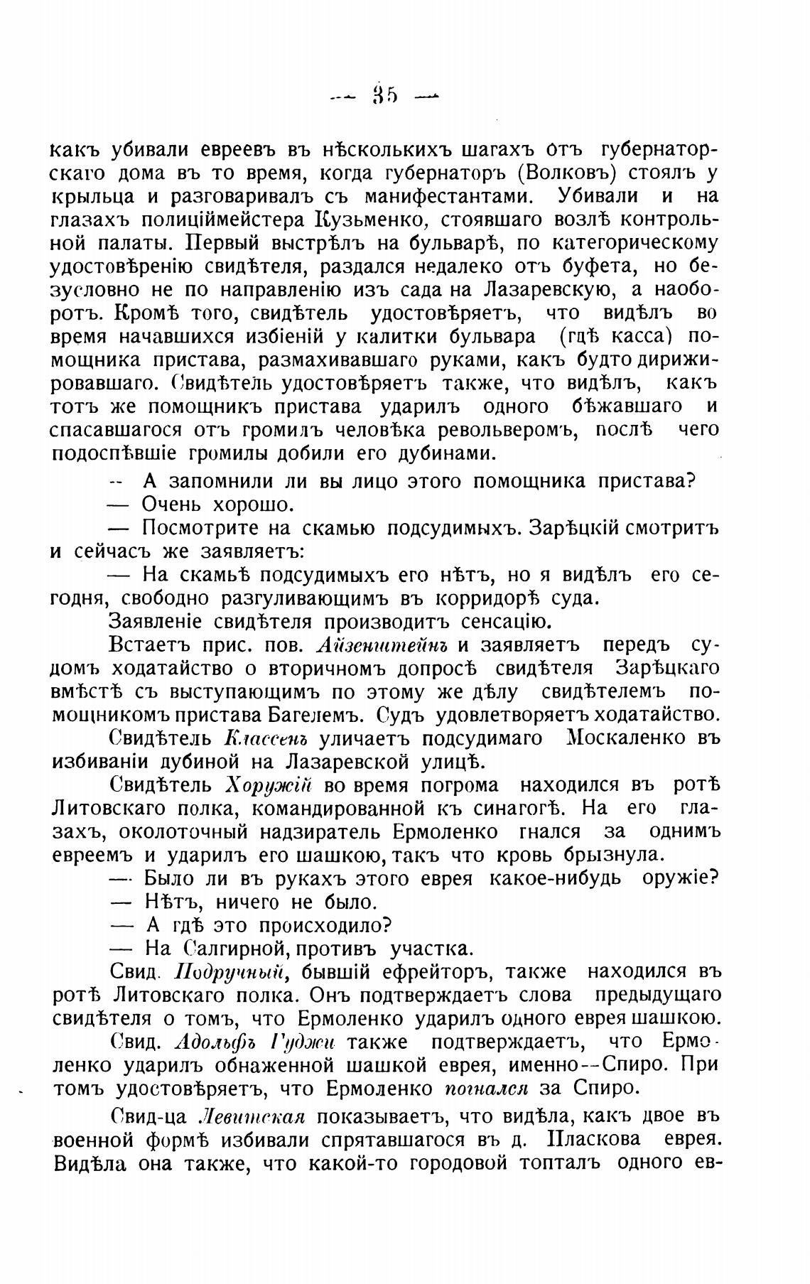 свид%теля о томъ, что Ермоленко ударилъ одного еврея шашкою.