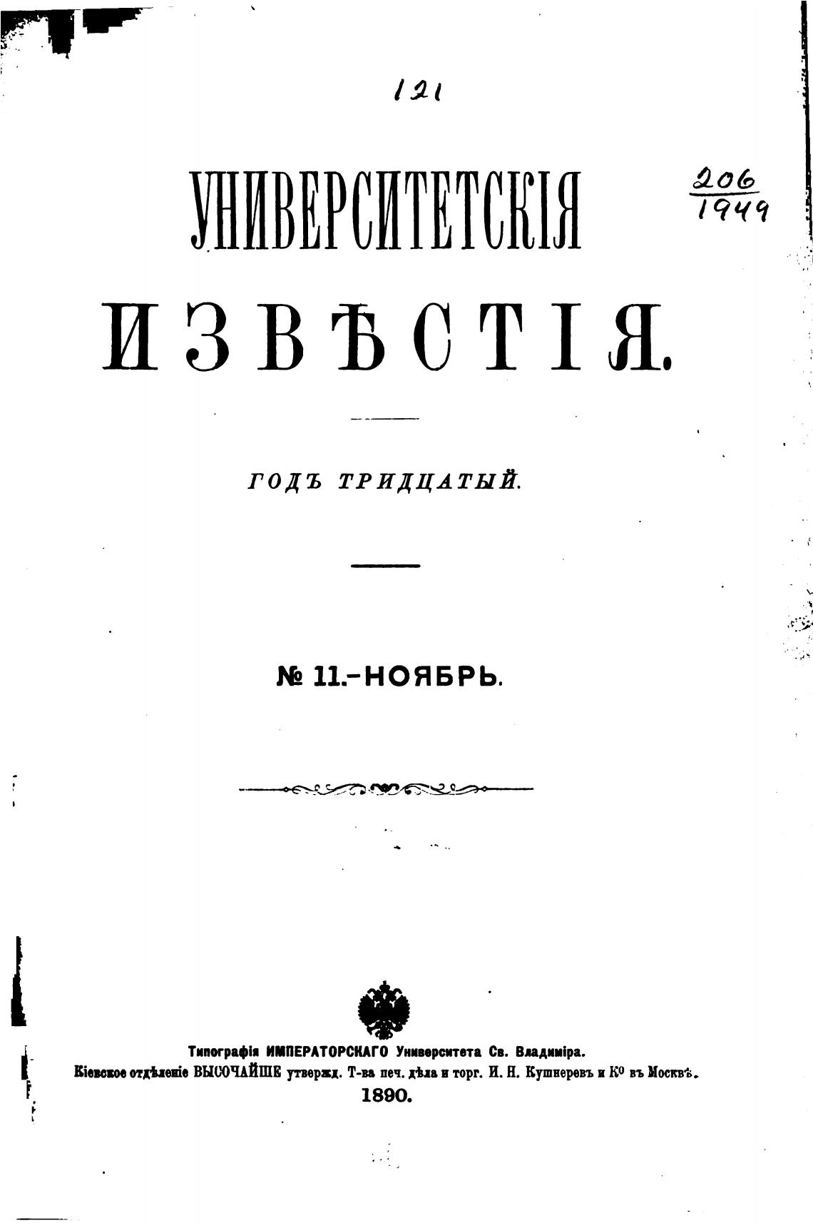 Типография ИМПЕРАТОРСКАГО Университета св. впдифа.
