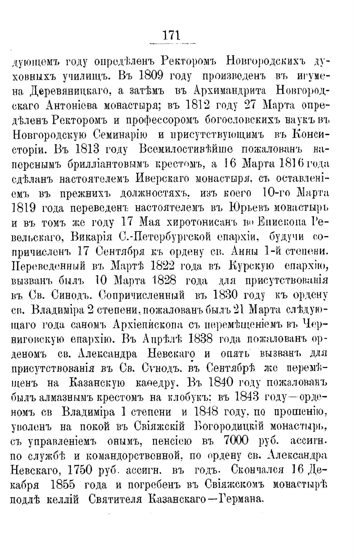 1ценъ на Казанскую каоедру. Въ 1840 году пожаловань