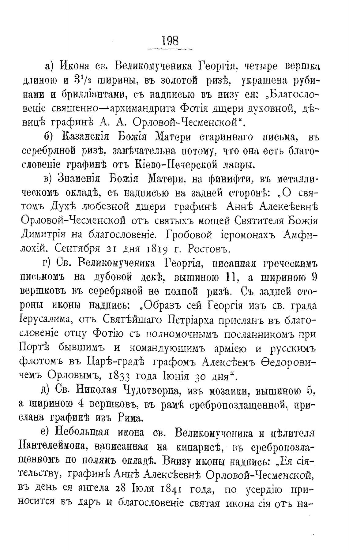 Орловой-Чесменской отъ святыхъ мощей Святителя