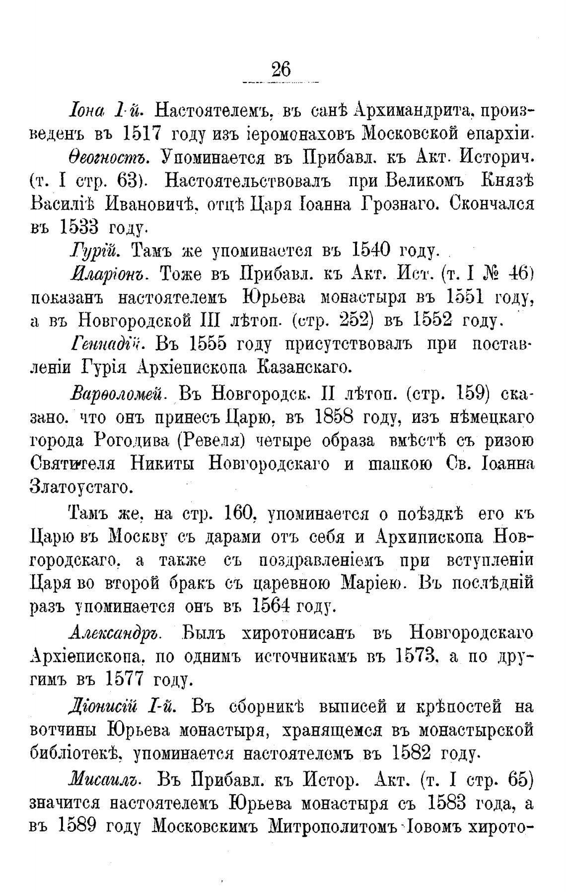 значится настоятелемъ Юрьева монастыря съ 1583 года, а