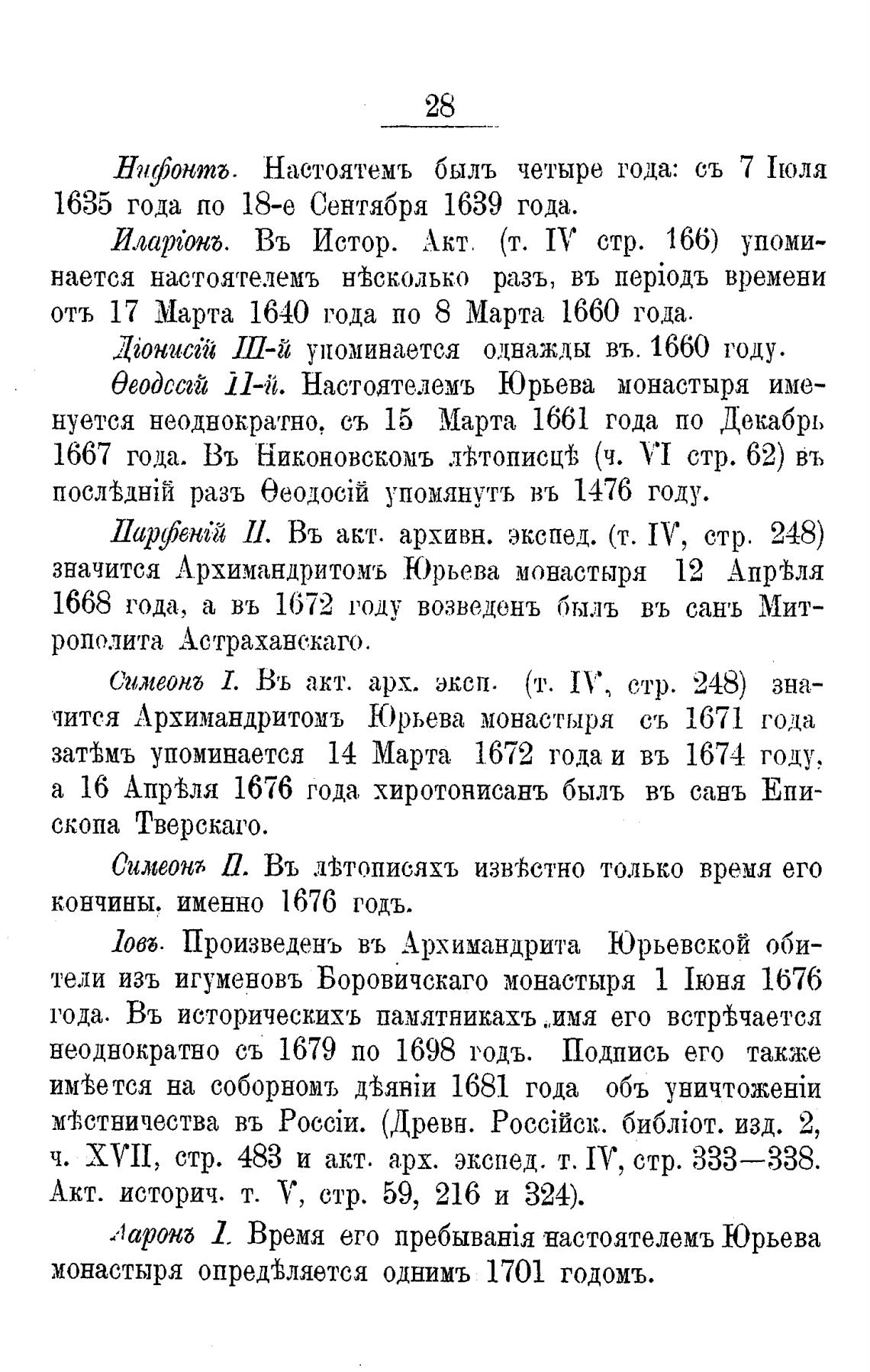 чится Архимандритомъ Юрьева монастыря съ 1671 года