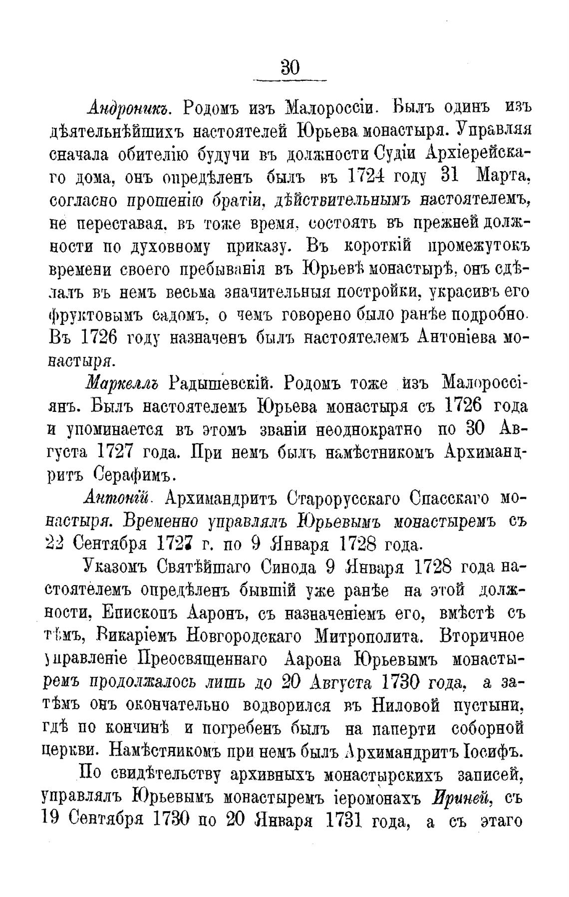 янъ. Быль настоятелемъ Юрьева монастыря съ 1726 года