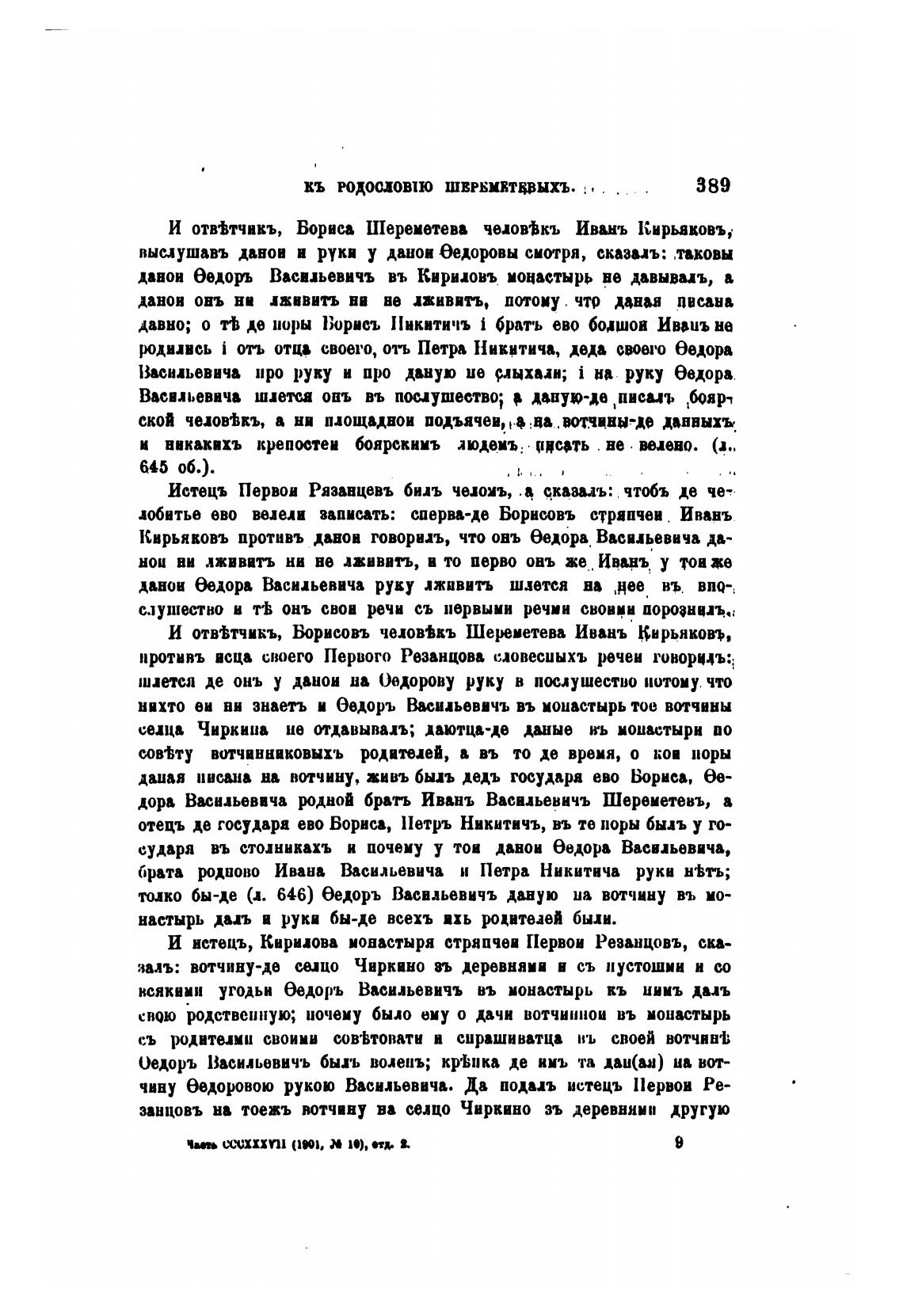 И от“тчикъ, Вориеовъ чехов•въ Шереметева Ивань Кирьяковъ,