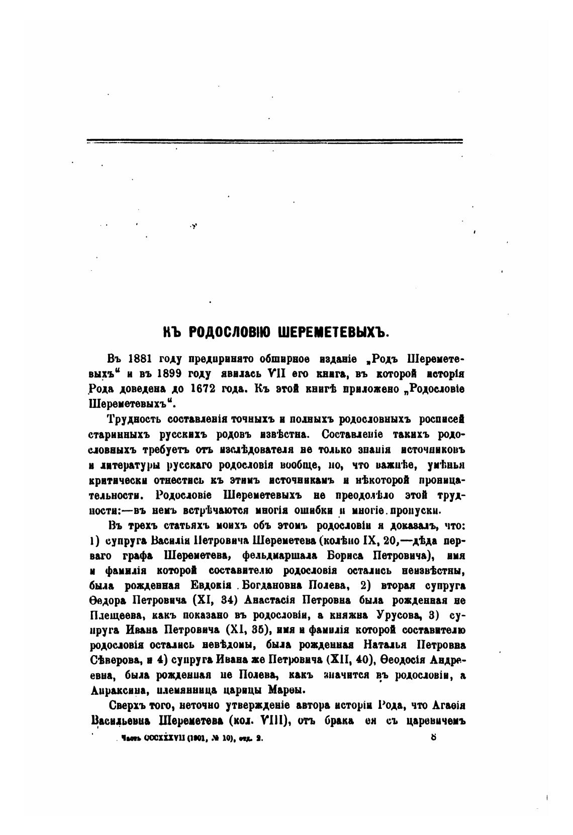 P0N)H0Bie Шереметевыхъ не этой труд-
