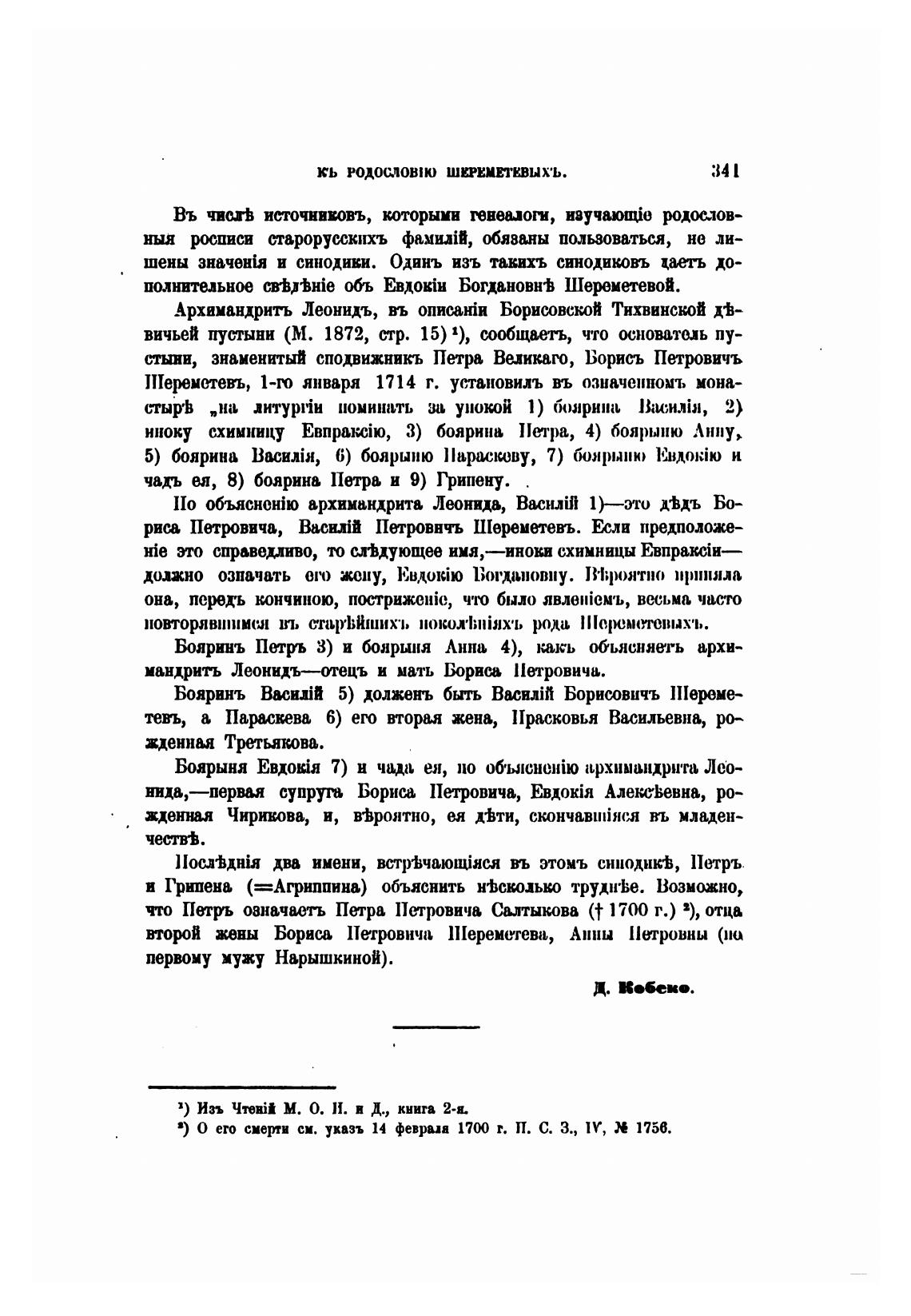 два имени, въ этомъ сниоднк%, 11етръ