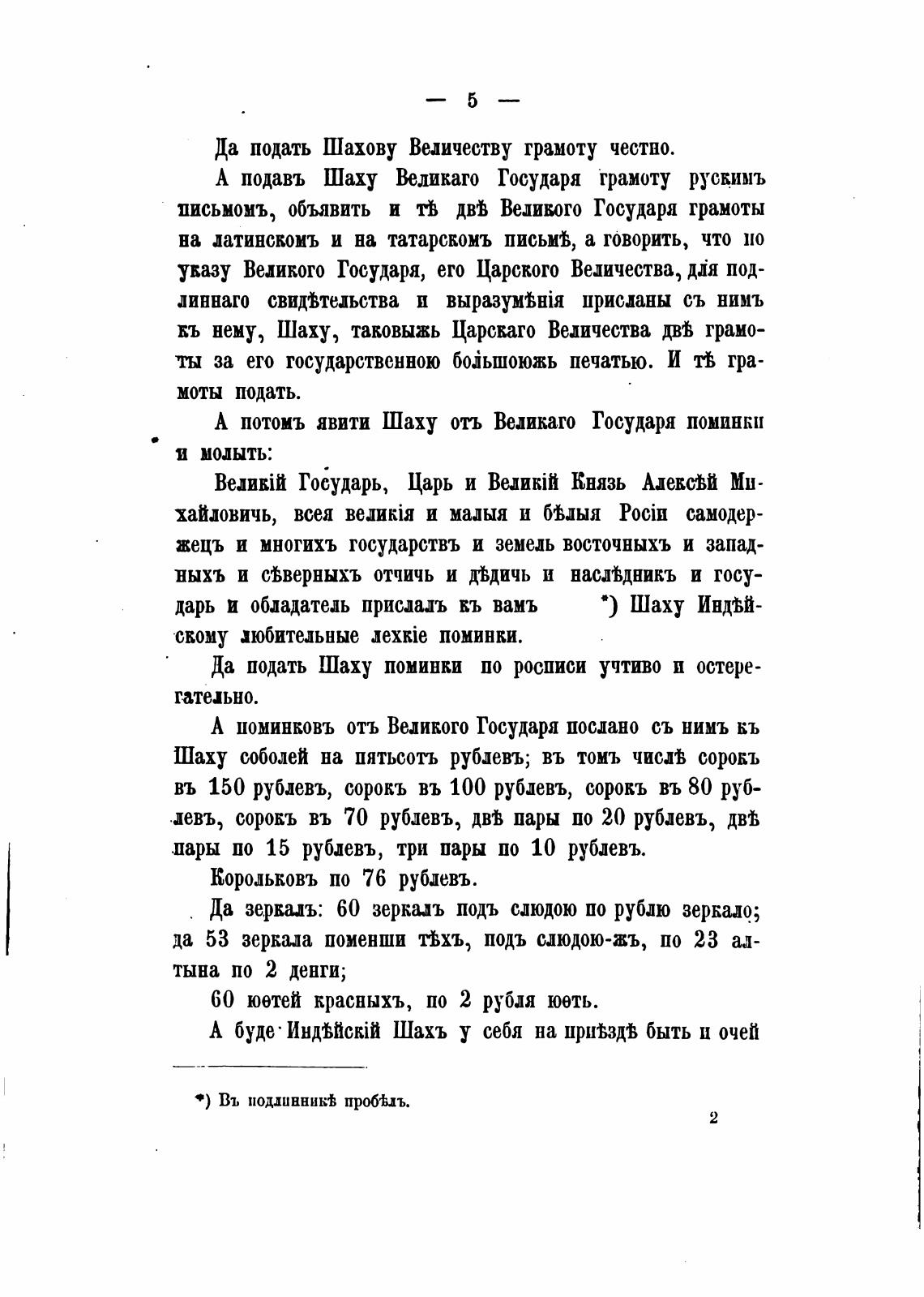 А потоиъ явиш Шаху отъ Ведикаго Государя поминки