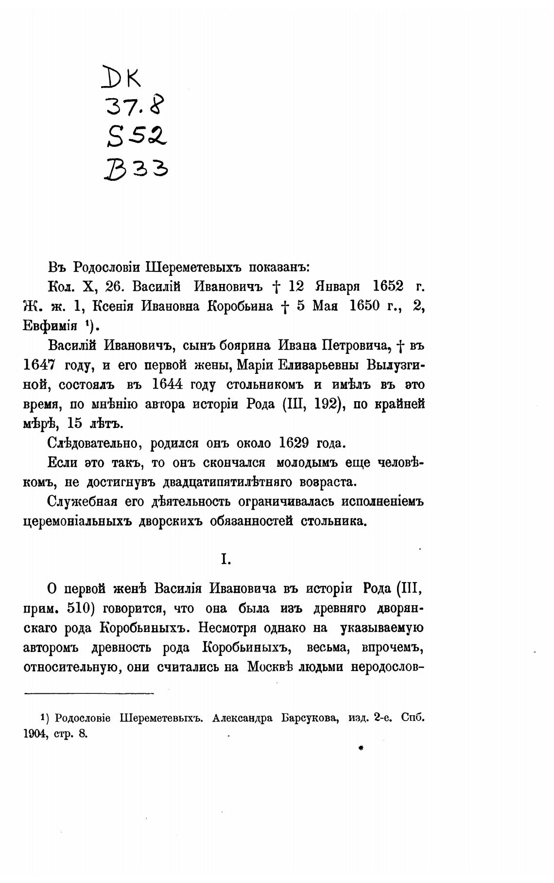 1) Шереметевыхъ. Александра Барсукова, изд. 2-е. СПб.