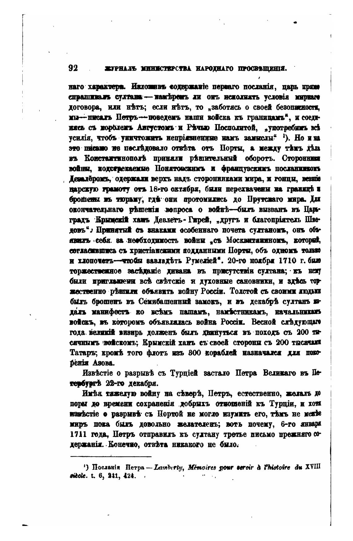 1) Послан\я Петра — I.nmhtrty, M6moires E0ir РННоЬ•е