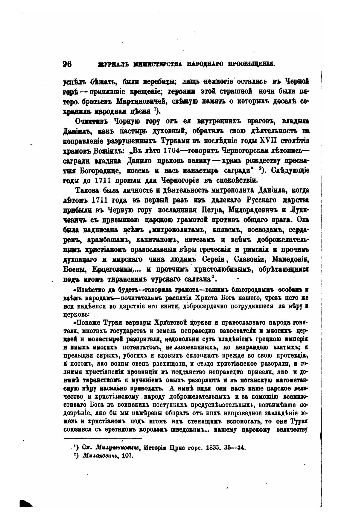 црибыди въ Черную гору Петра, Миорадоввчъ и Луви-
