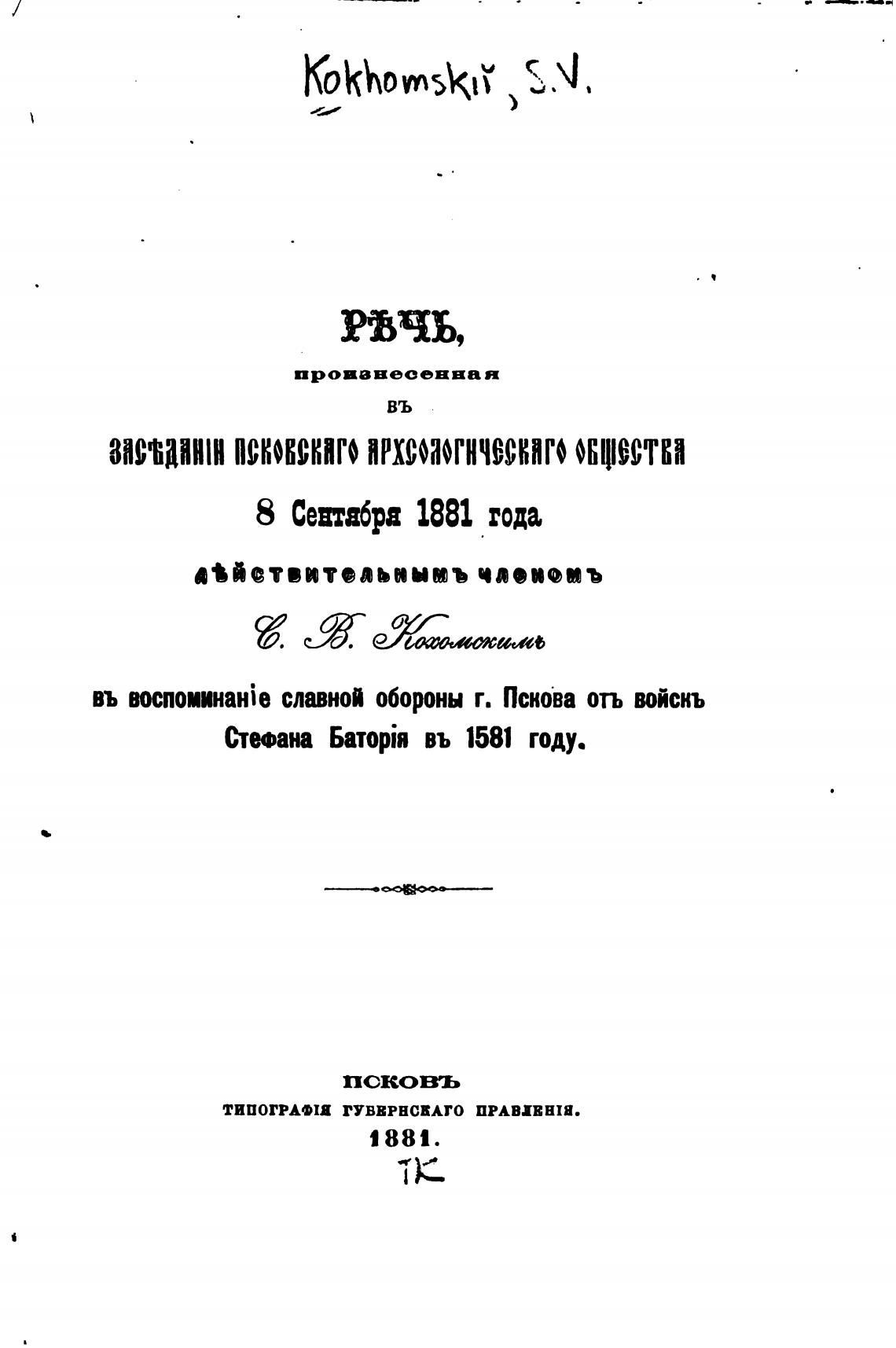 въ BocnomaHie славной обороны г. Пскова отъ войскъ