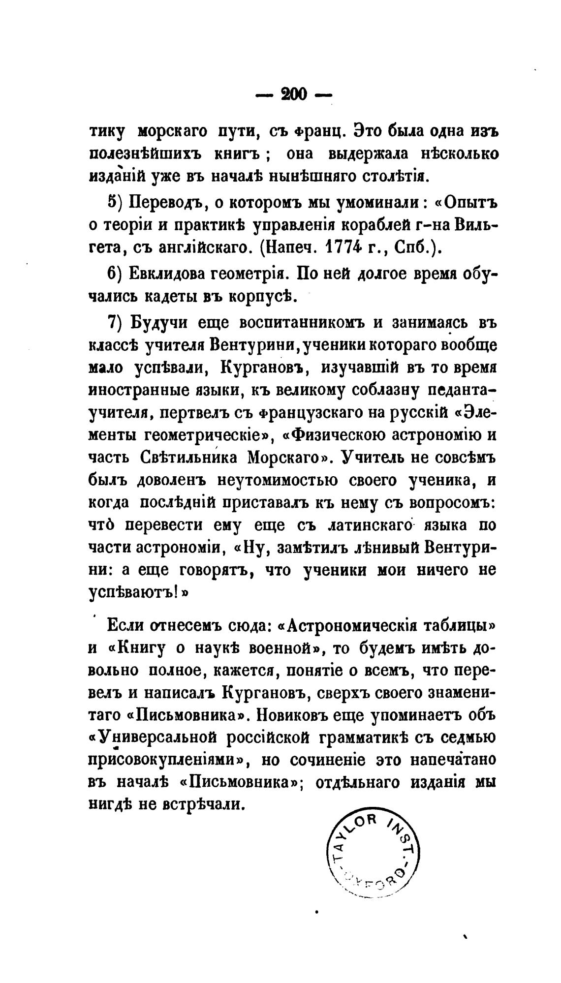 часть Св±тильника Морскаго». Учитель не совс%мъ