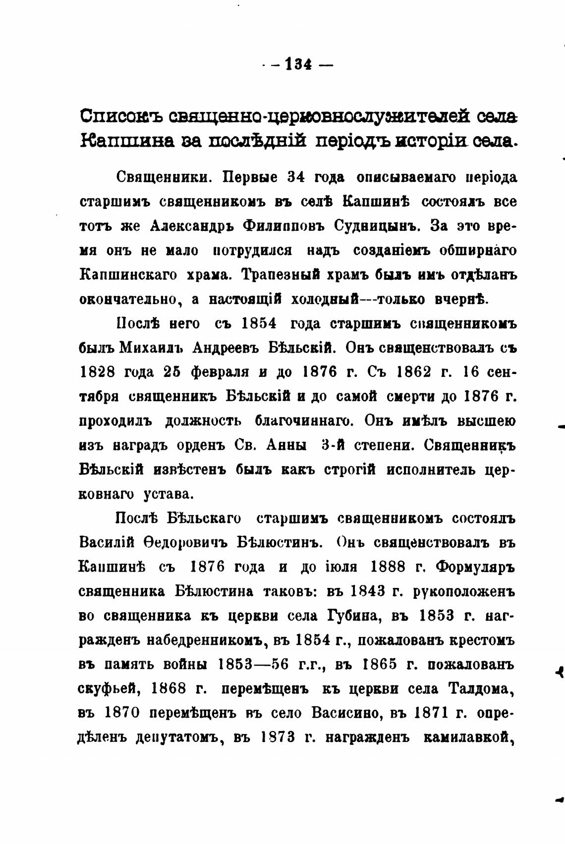 старшимъ священникомъ въ сел% Капшин± состоять все