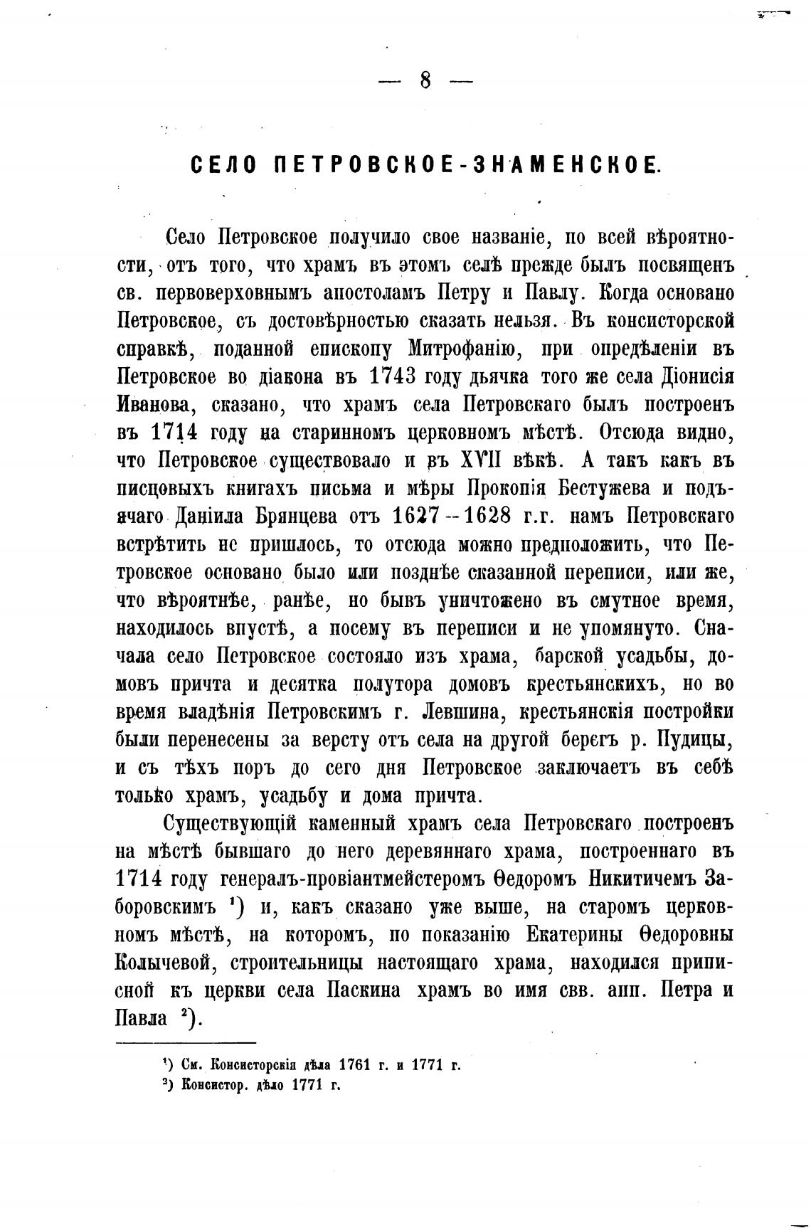 Иванова, сказано, что храмъ села Петровскаго быль построень