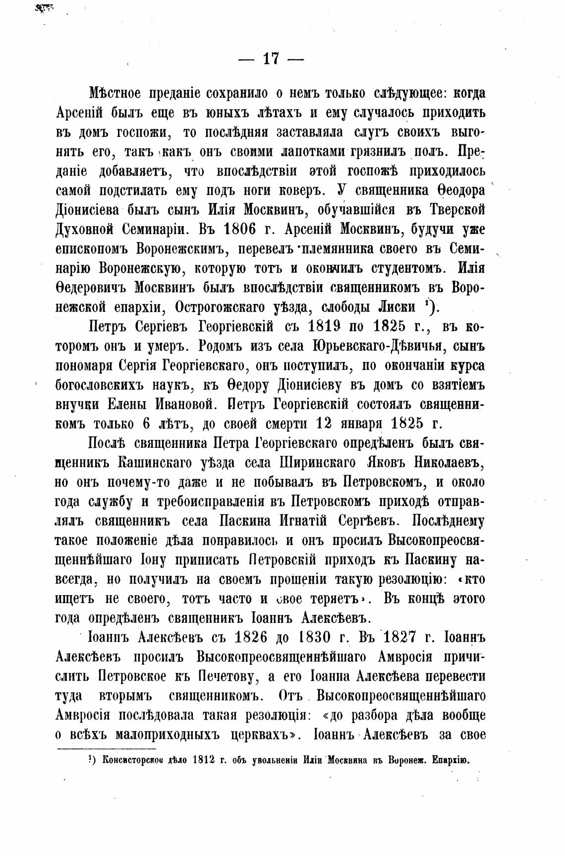 бедеровичъ Москвинъ быль священникомъ въ Воро-