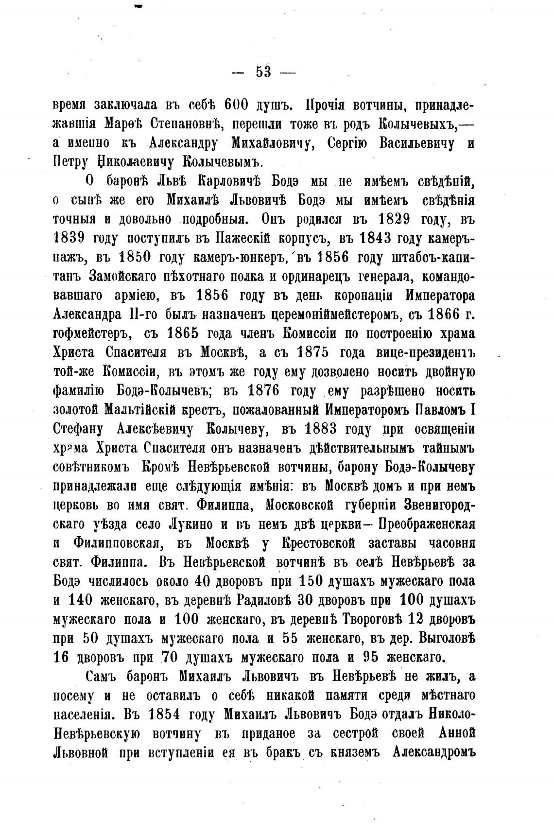 Въ 1854 году Михаилъ Львовичъ Бодэ отдадъ Николо-