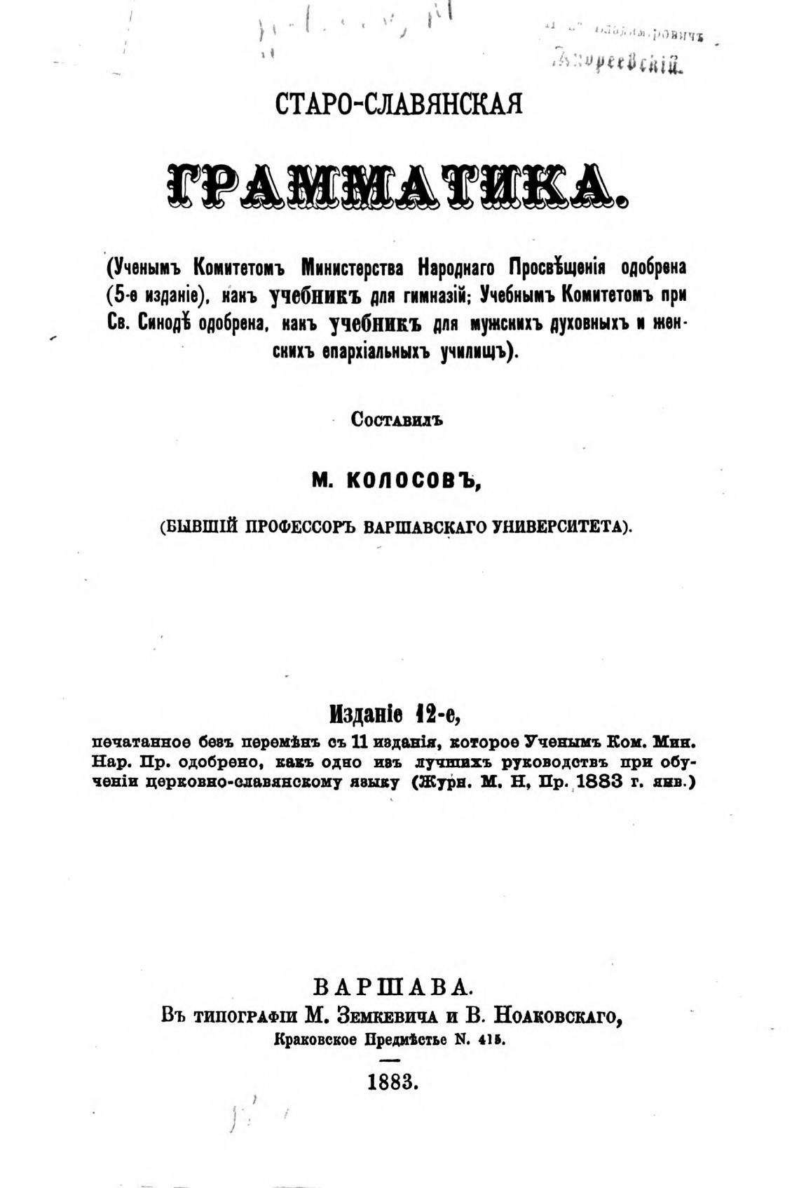 церковно-сдавянсвому явыву (Журн. М. Н, Пр. 1883 г. янв.)