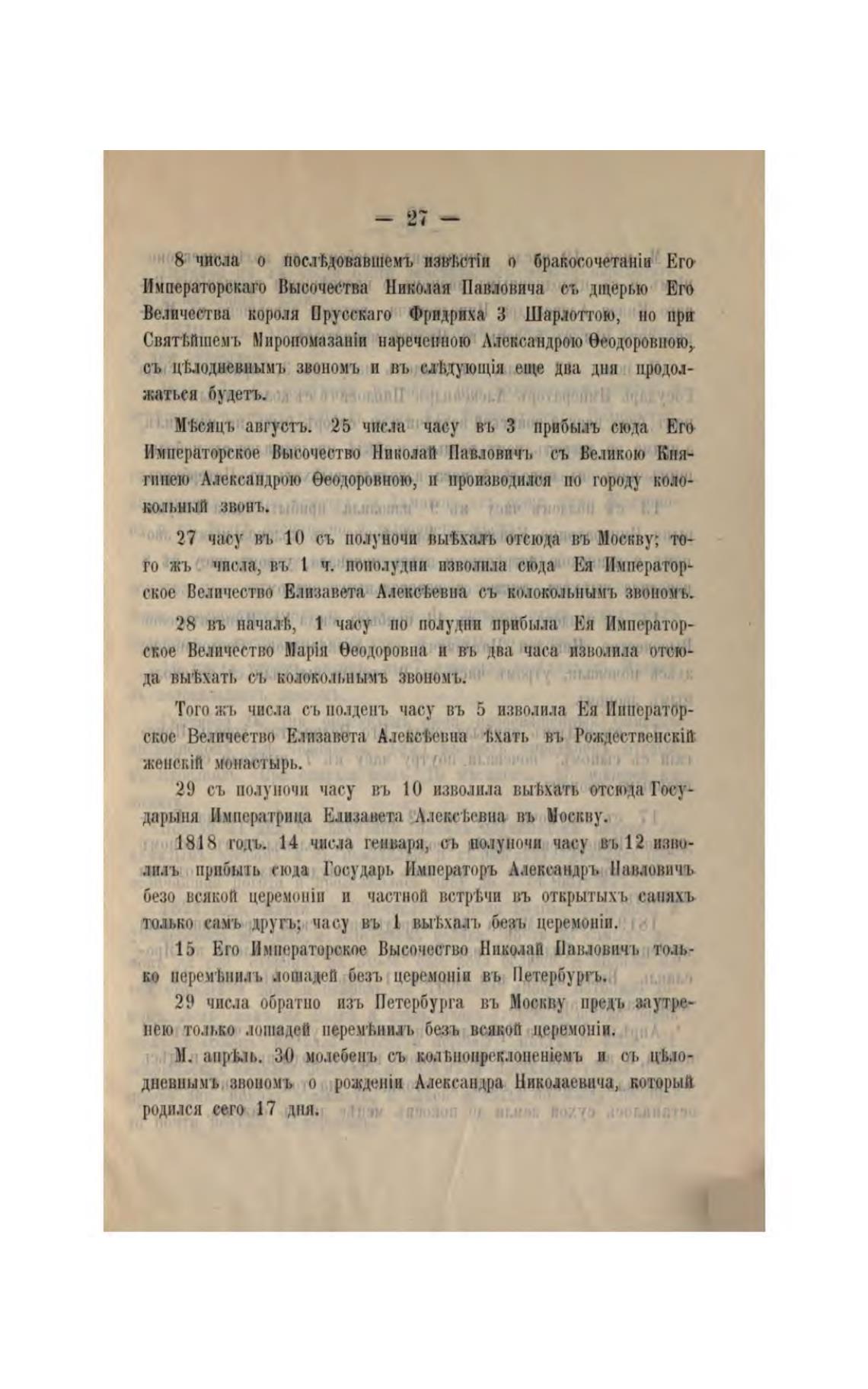 29 числа обратно изъ Петербурга въ Москву предд, заутре-