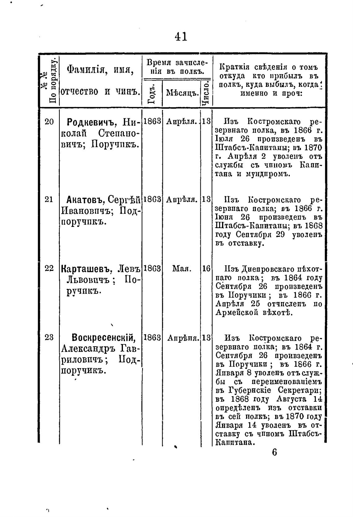 въ Поручики; въ 1866 г.