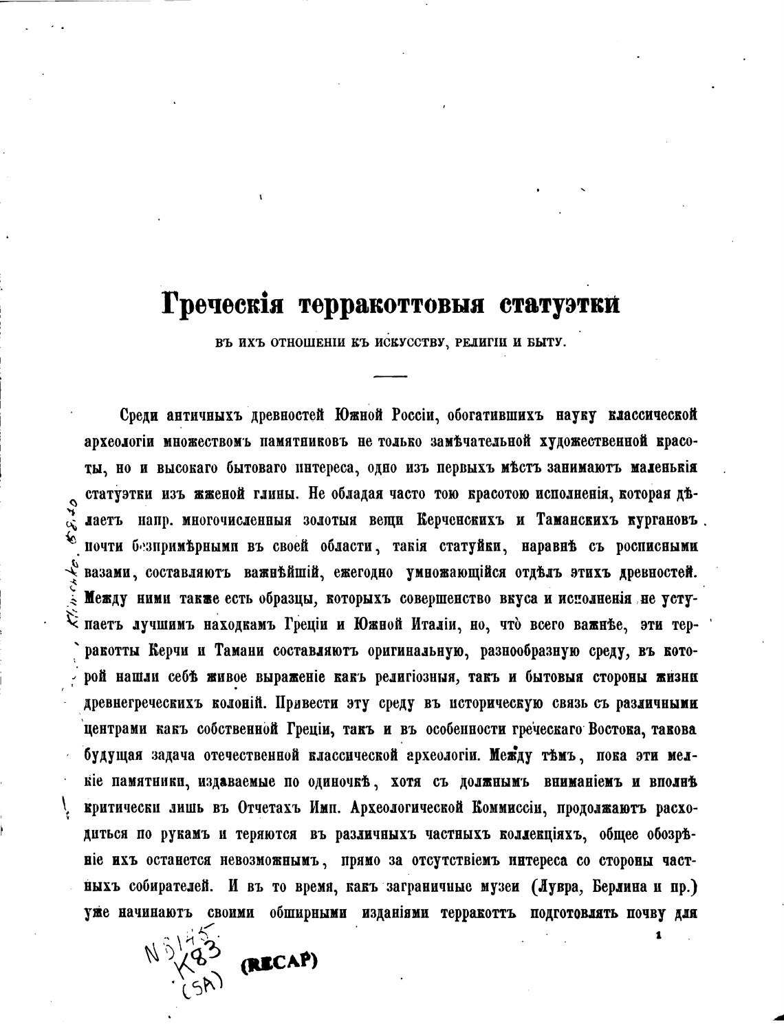 уже начинаютъ своими обширными изданјнми терракоттъ подготовить почву мя