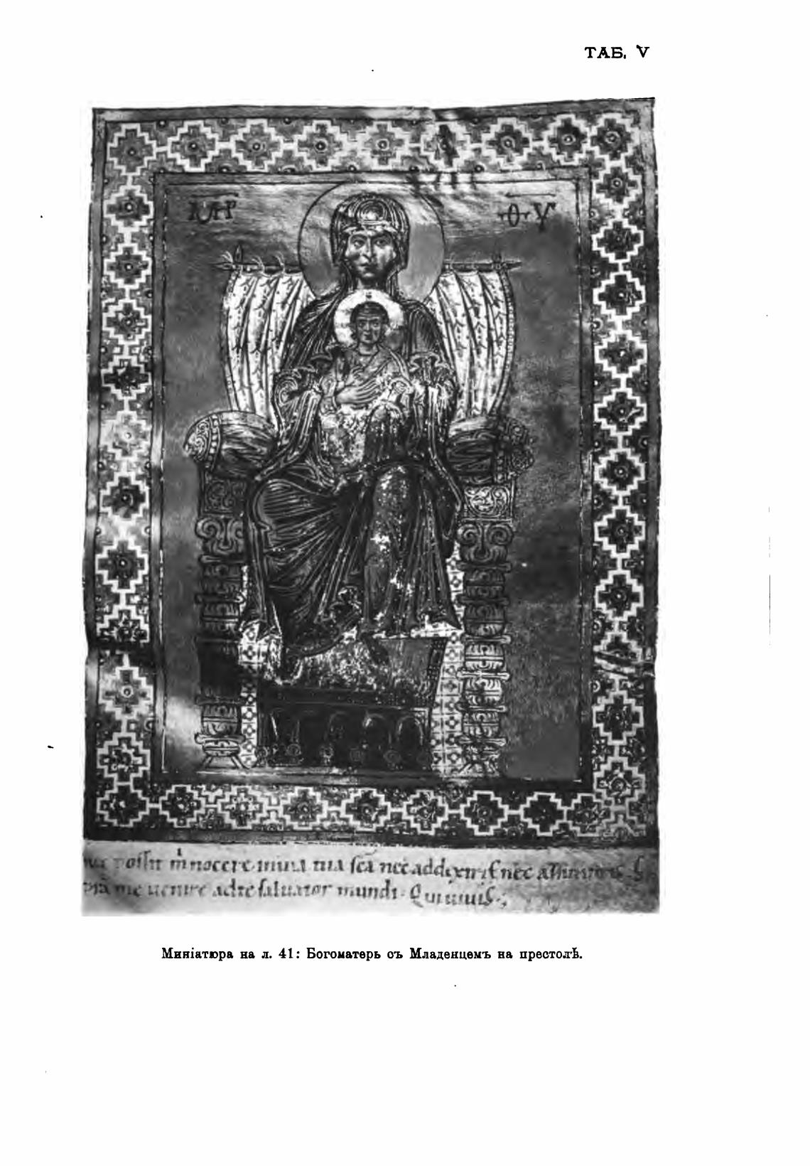 на л. 41: Богоматерь оъ Младенцемъ на престол•В.