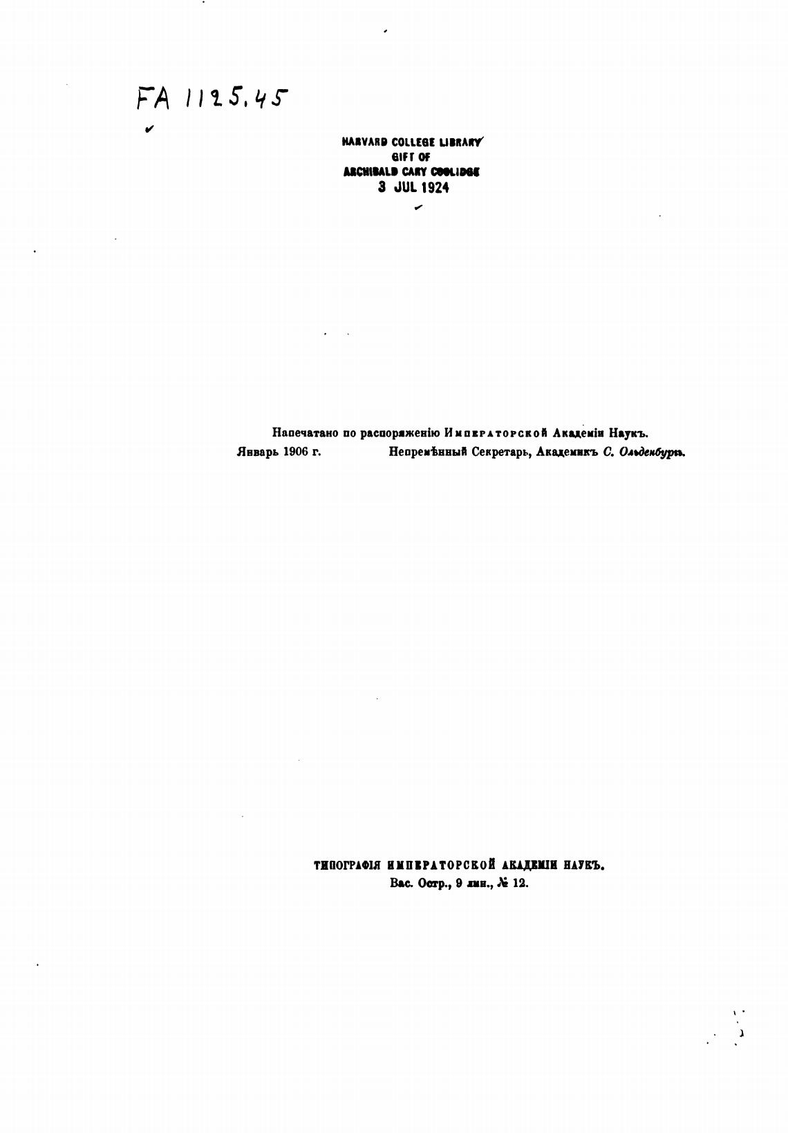 Напечатано по И ипврдторской Akueuia Наукъ.