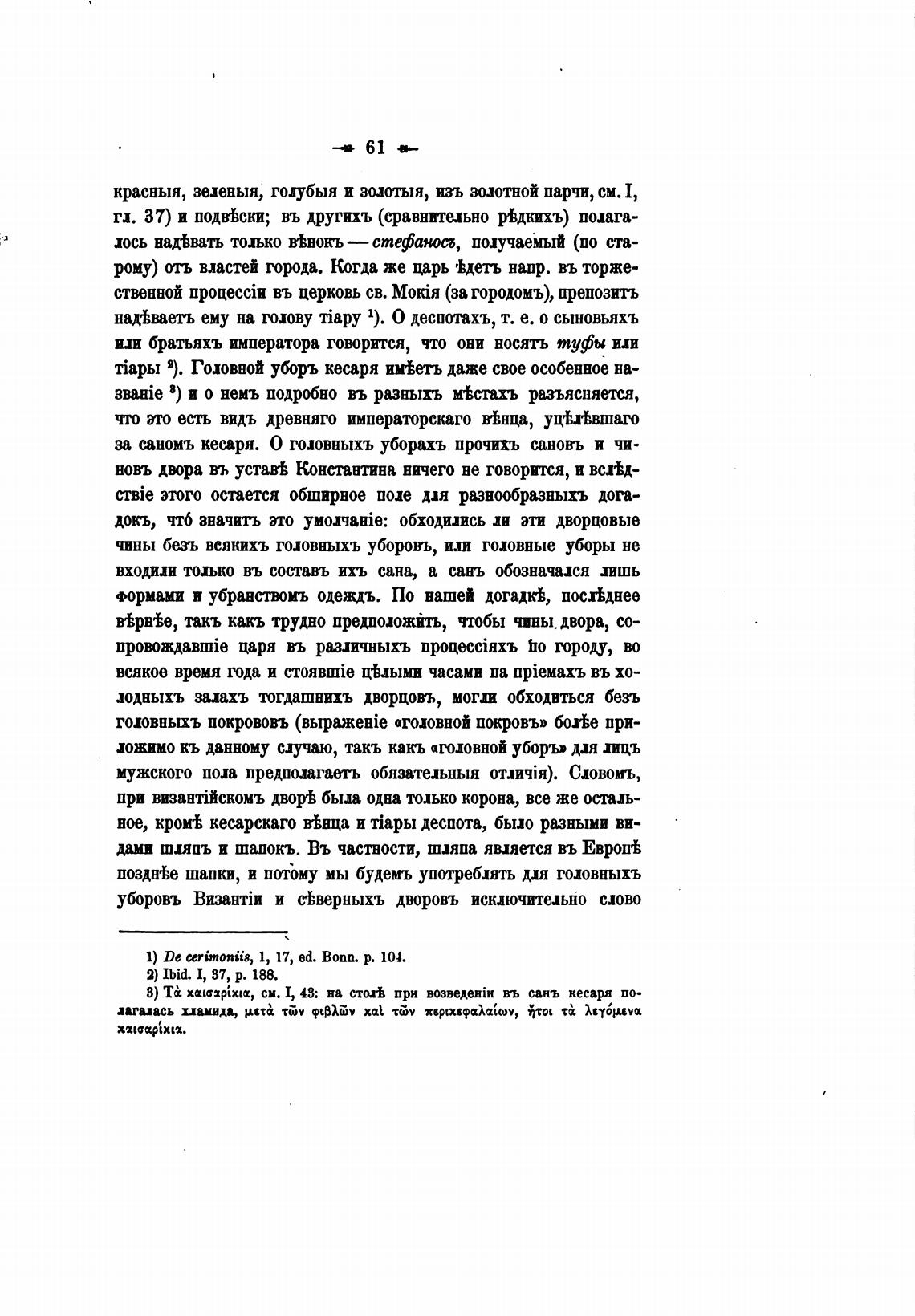 и иномъ кесаря. О головныхъ уборахъ прочихъ сановъ и чи-