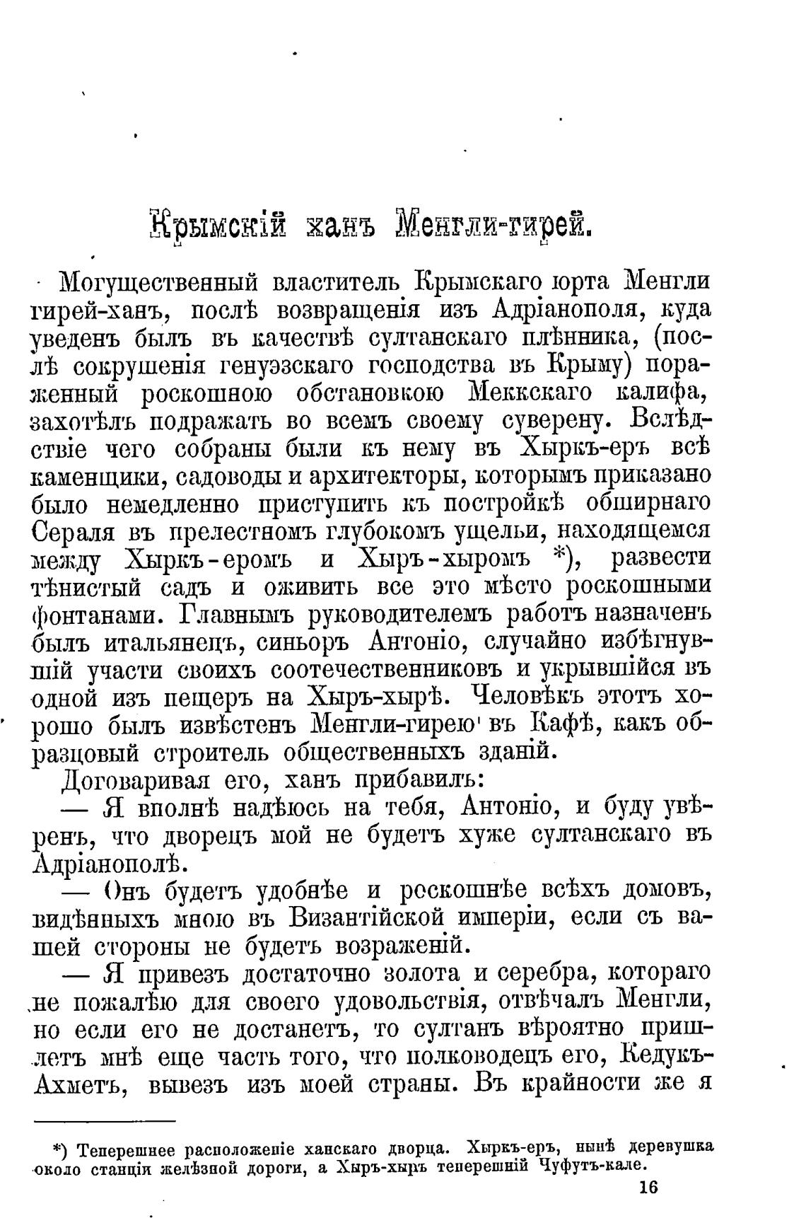 * ) Теперешнее ханскаго дворца. Хыркъ-еръ, нын'ђ деревушка