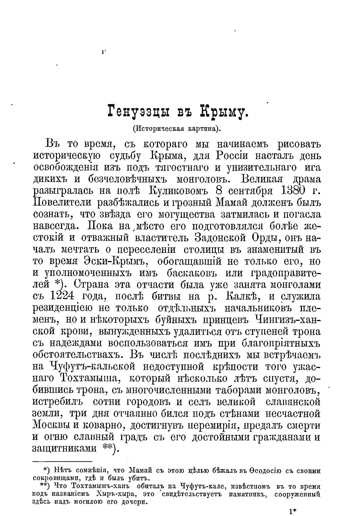 **) Что Тохтамышъ-ханъ обиталъ на Чуфутъ-кале, изЙстиомъ въ то время