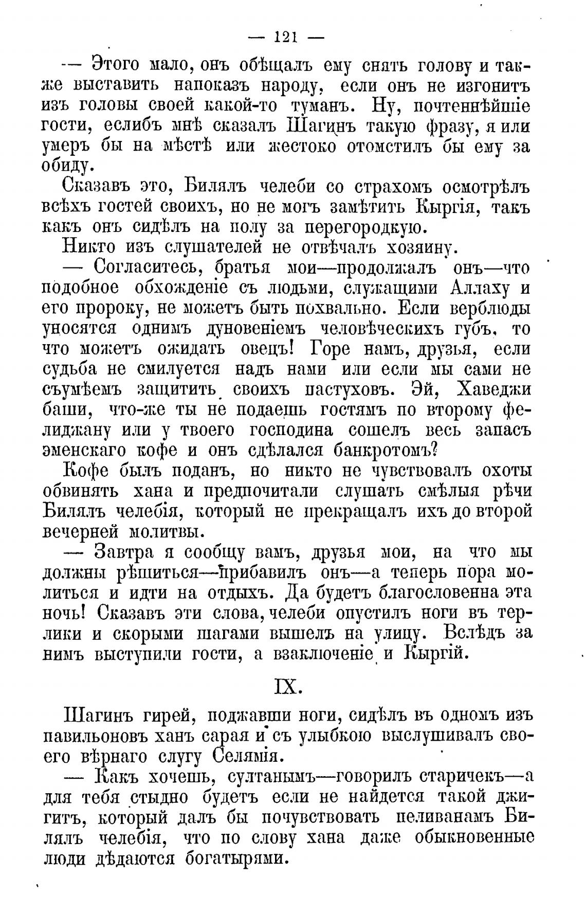 Сказавъ это, Билялъ челеби со страхомъ осмотревлъ