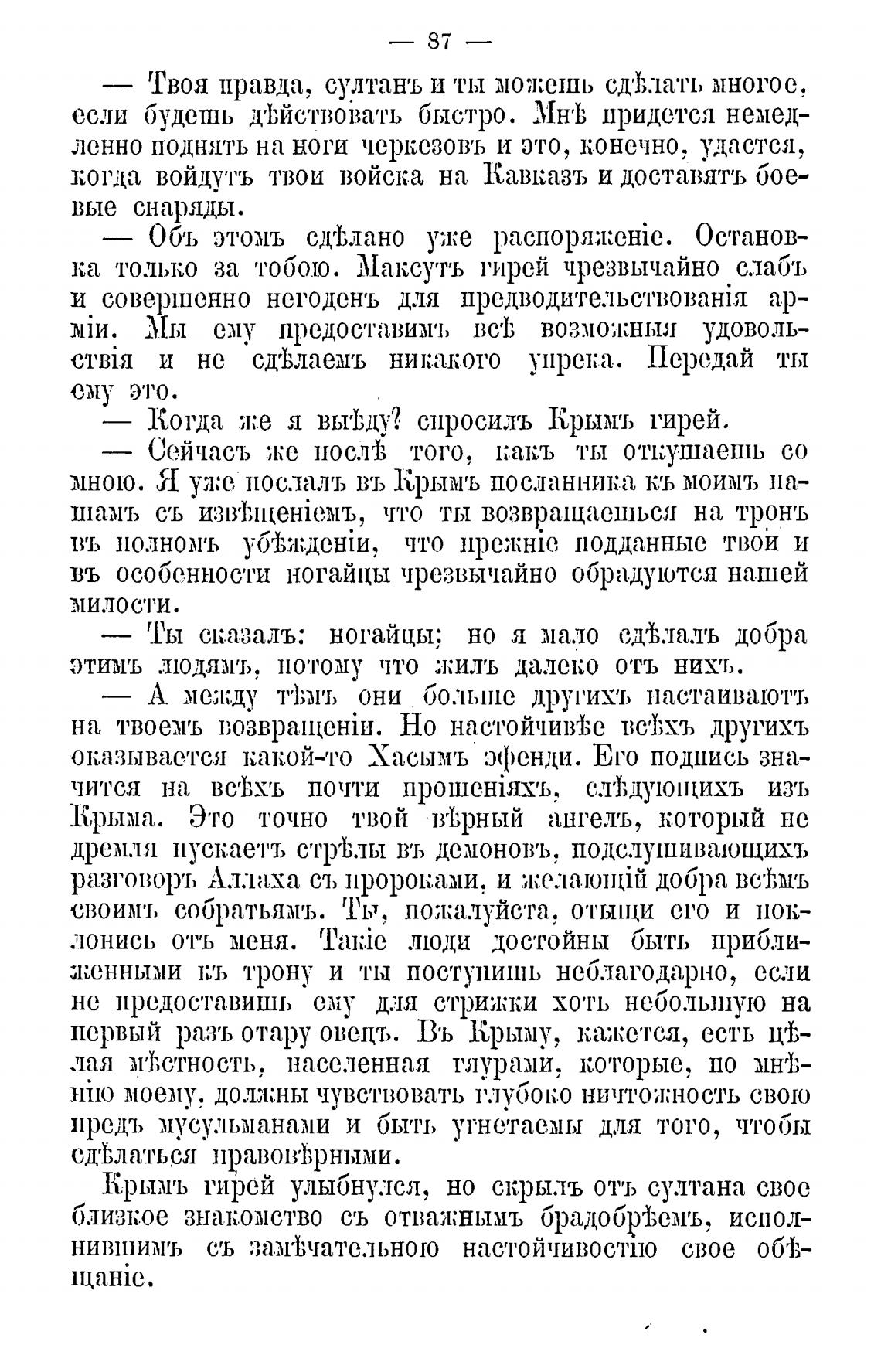Крымъ гирей улыбнулся, но скрылъ отъ султана свое