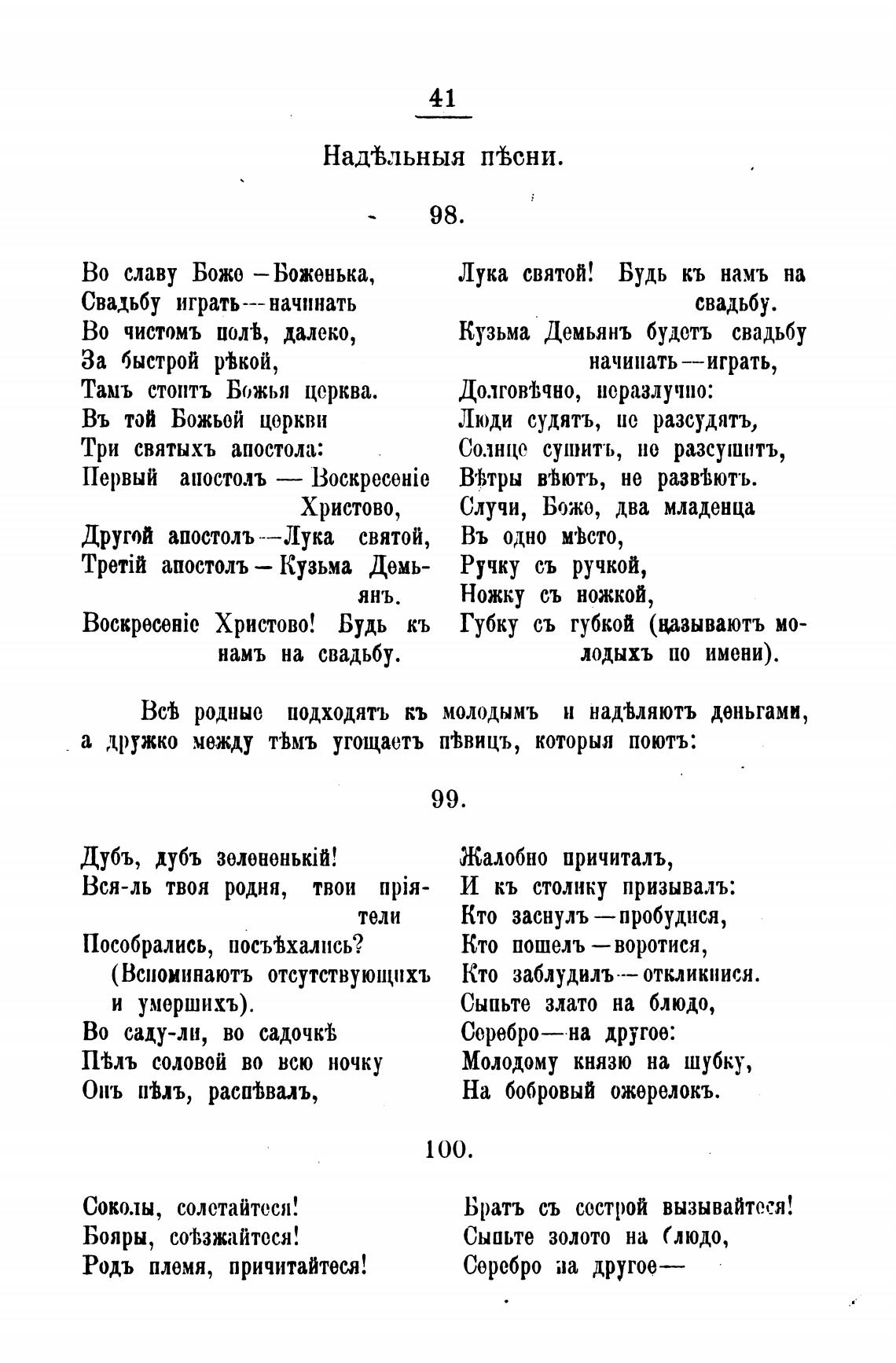 а дружко между ймъ угощаетъ птицъ, которыя поютъ: