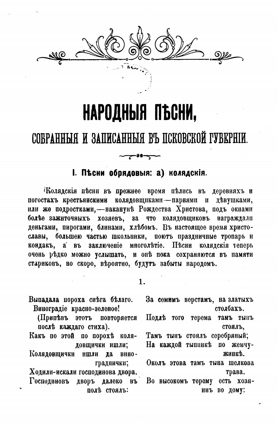 погостахъ крестьянскими колядовщиками —парнями и дТушками,