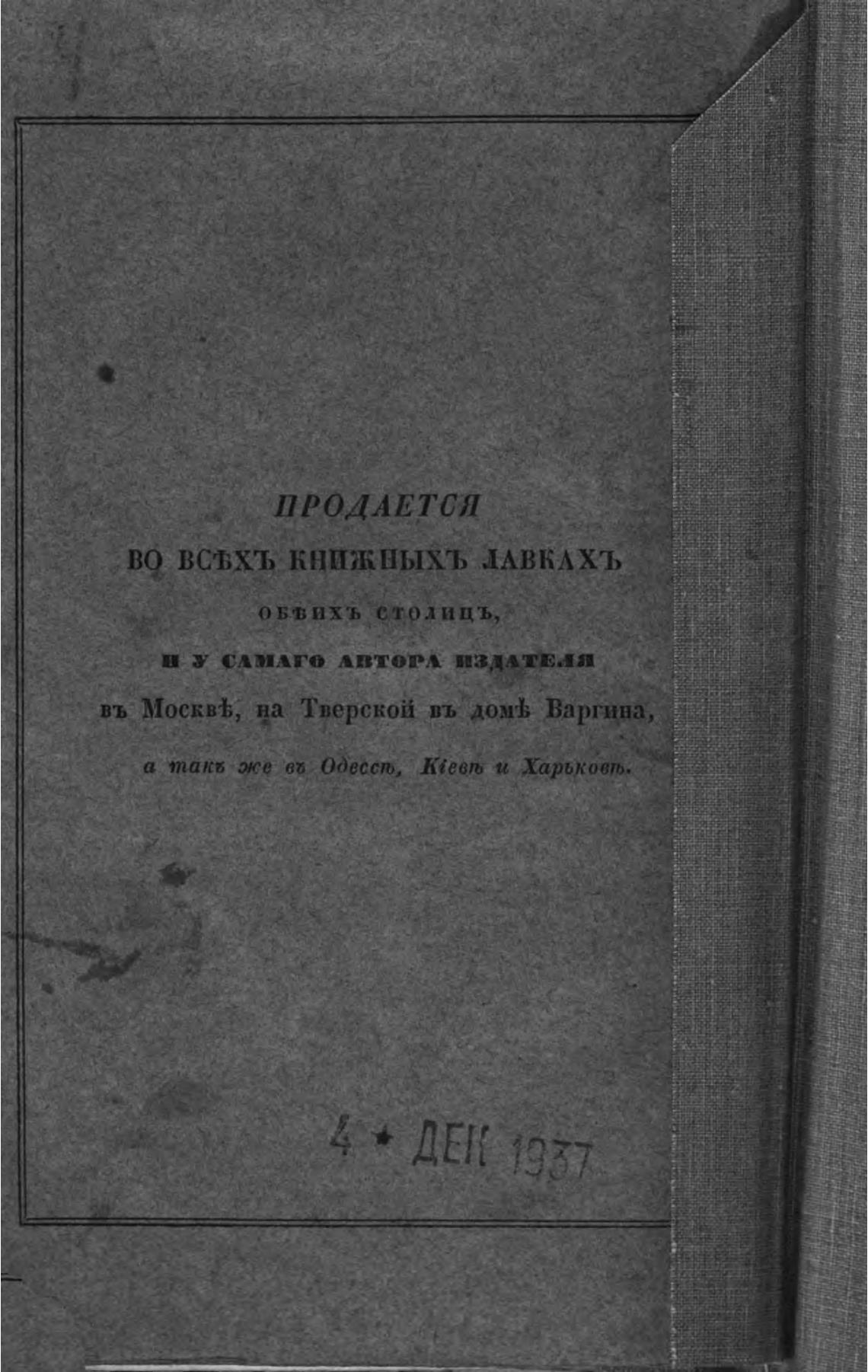 въ МосквТ,; на Тверской въ домћ Варгина;