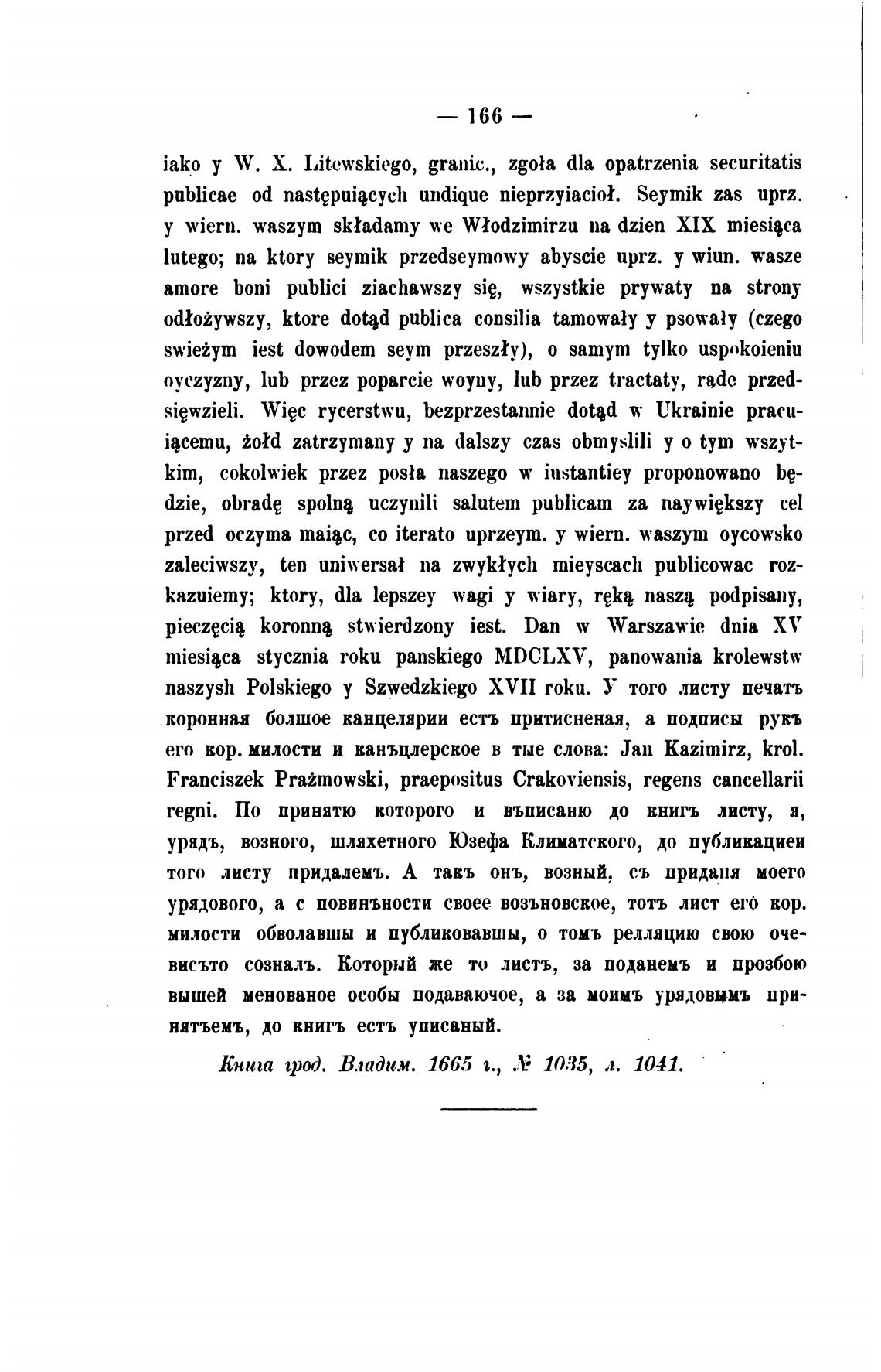 его вор. милости и ванъцлерское в тые слова: Јап kazimirz, krol.