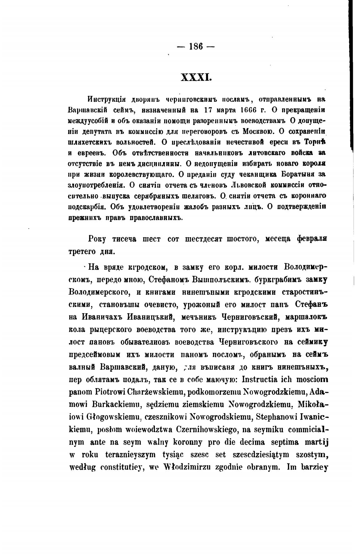 валный Варшавский, даную, ; ля въписаня до книгъ нинешъныхъ,