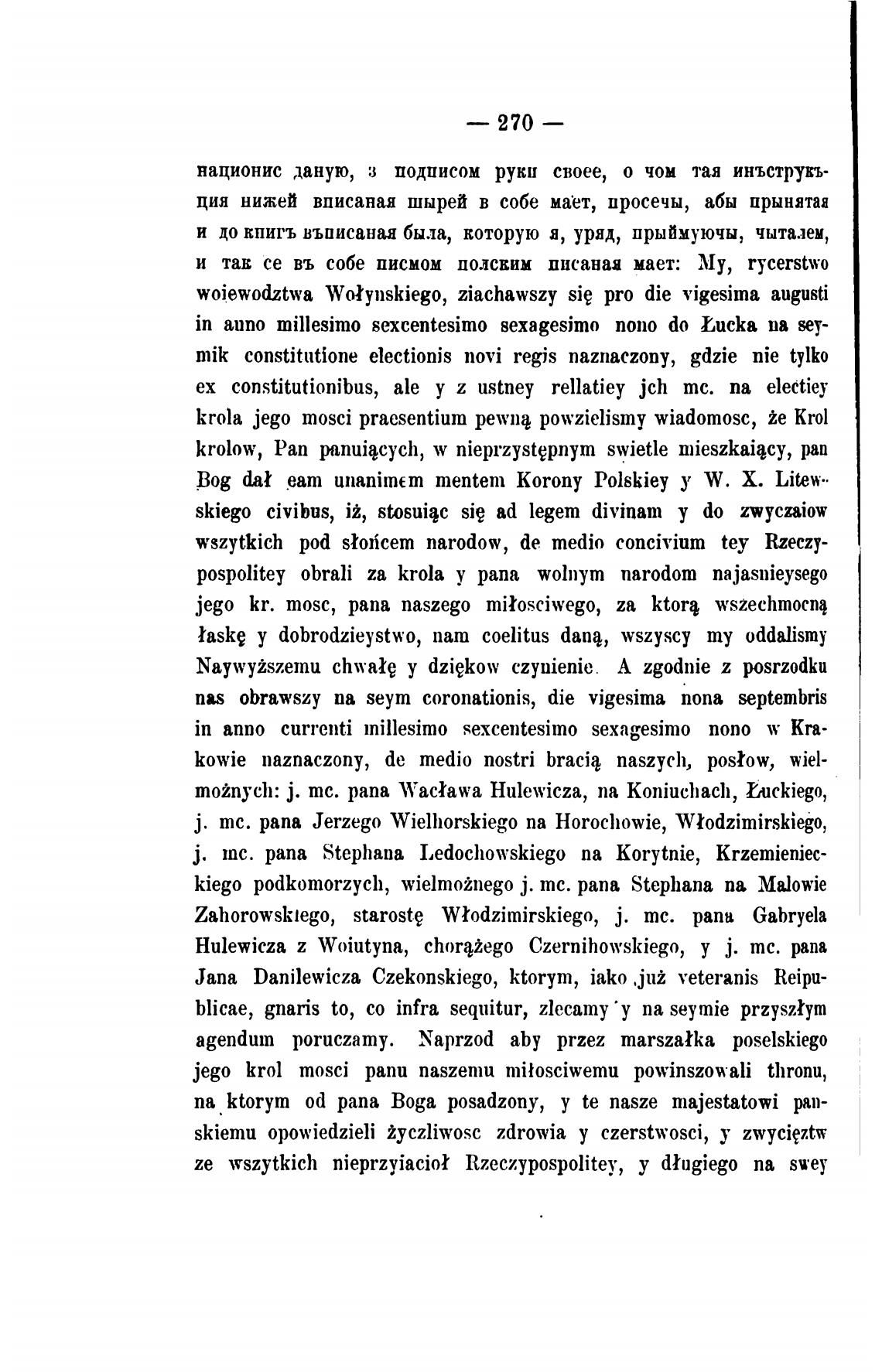 woiewodztwa Wo*ynskiego, ziachawszy sie pro die vigesima augusti