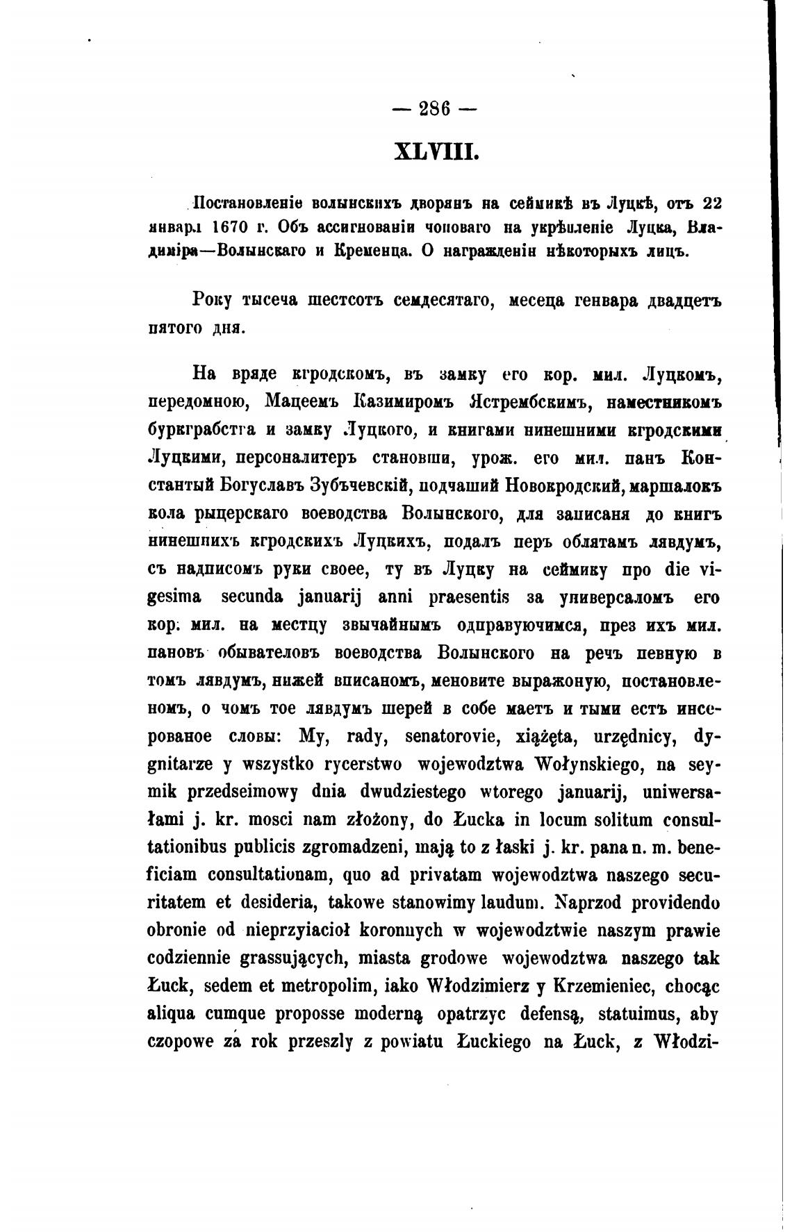 волынскихъ дворавъ на сеймикђ въ Луцк•Ь, отъ 22