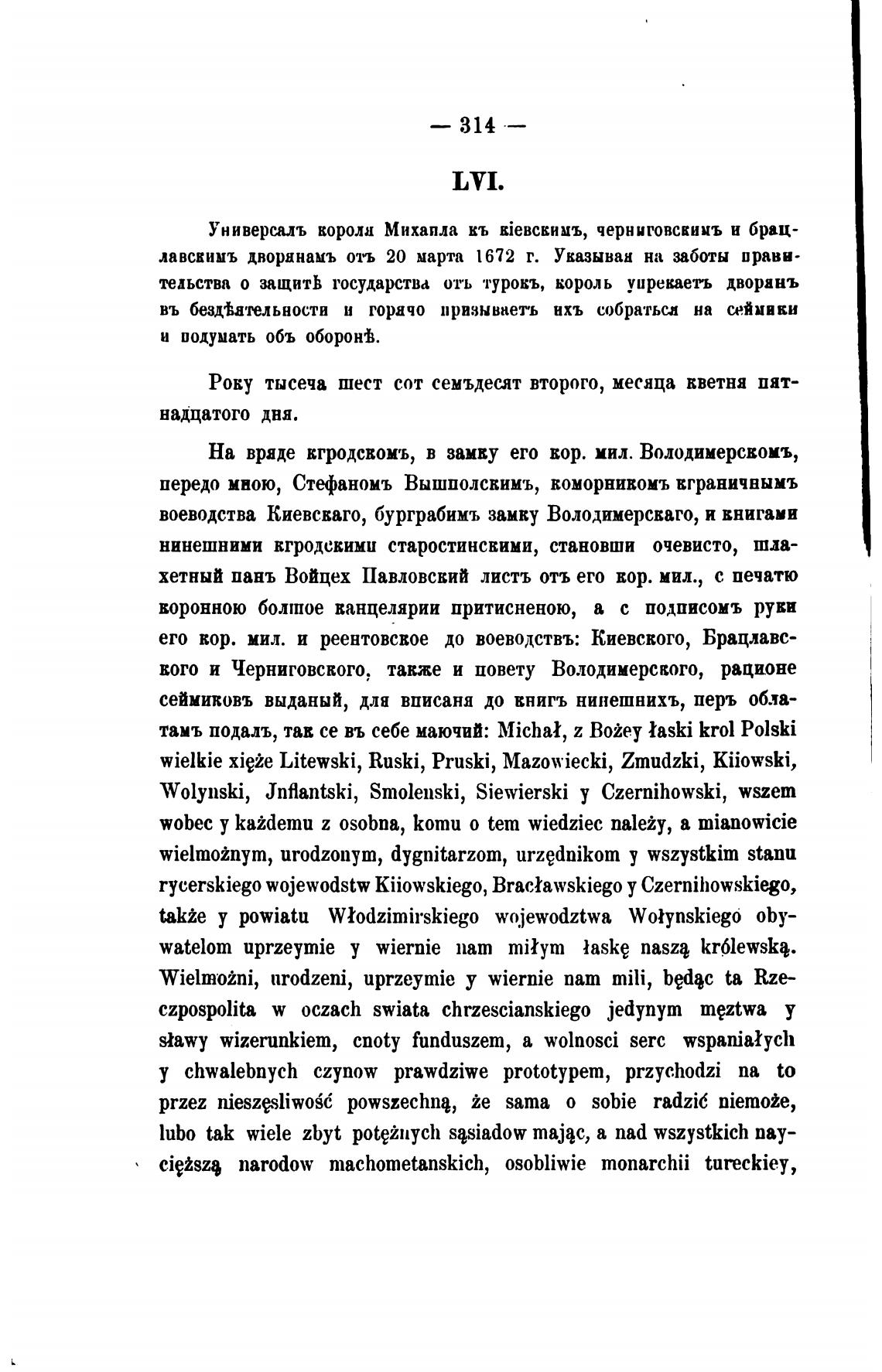 Универсаль короли Михапла кь kieBckHMb, черниговскииъ и брац-