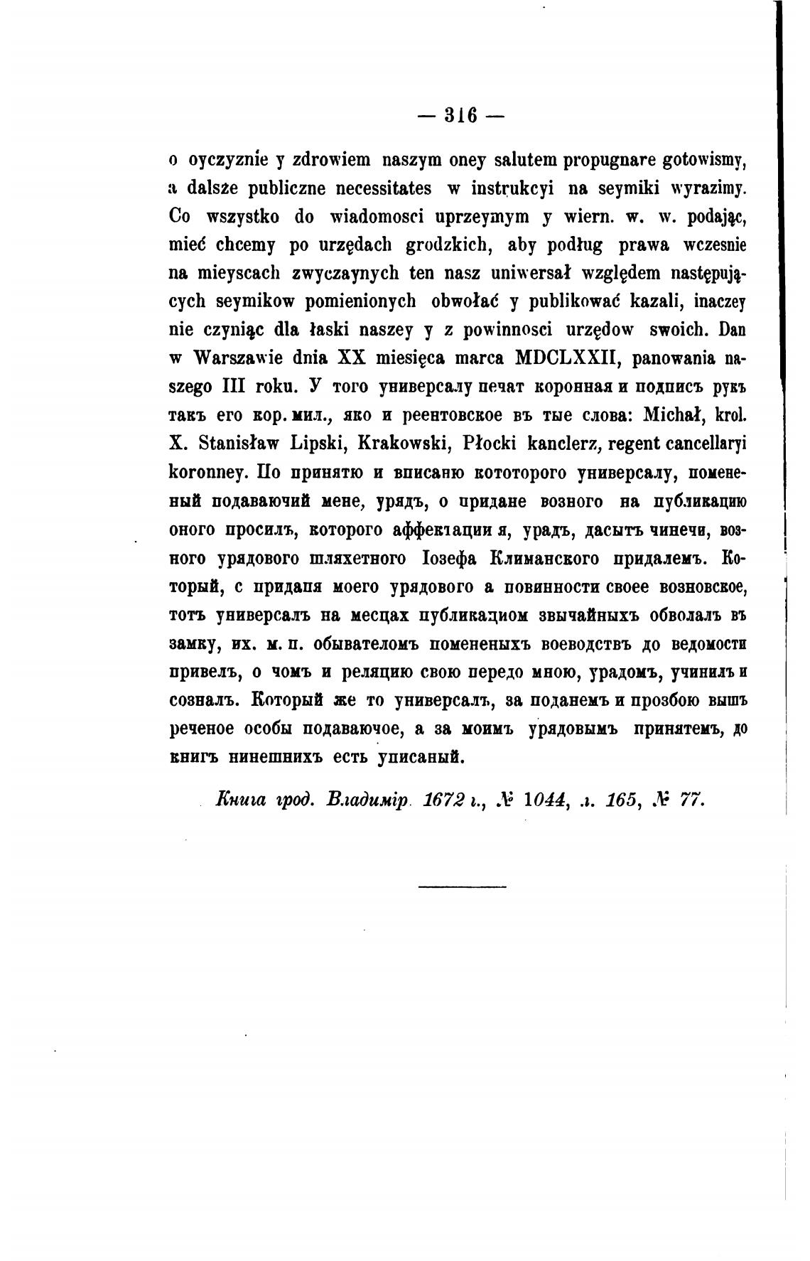 szego III roku. У того универсалу печат коронная и подпись рувъ