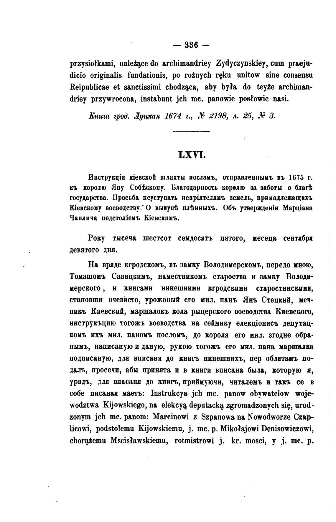 Инструк[јн kieBcE0ti шлихты иоиамъ, отправленнымъ въ 1675 г.
