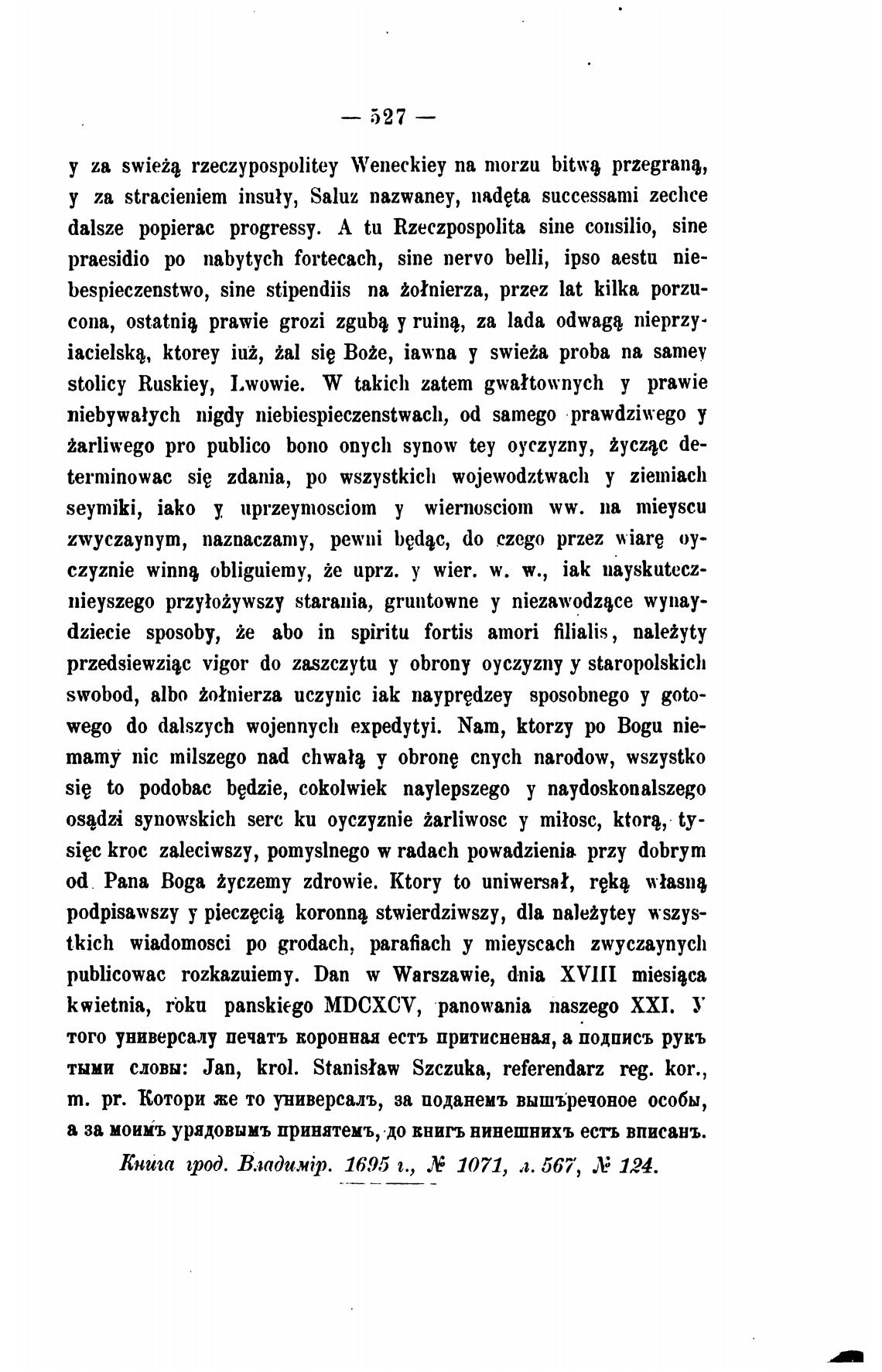 тыми сдовы: Јап, krol. Stanisraw Szczuka, referendarz reg. Кот.,