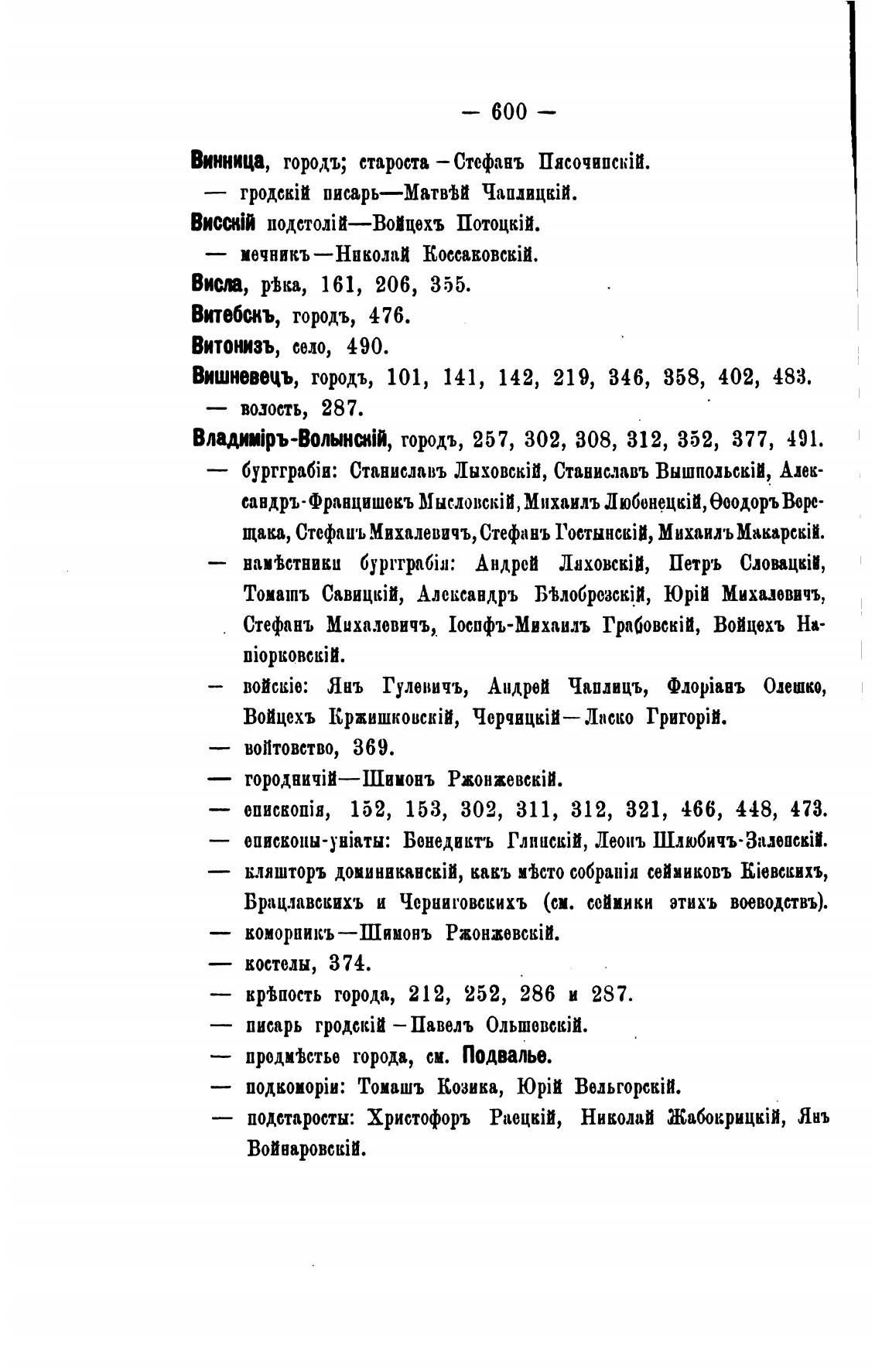 Вишневецъ, торо», 101, 141, 142, 219, 346, 858, 402, 483.