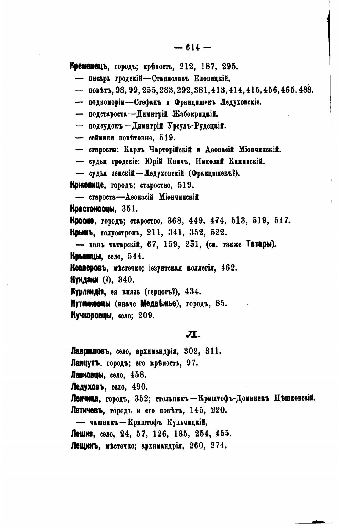 Лы«ца, городъ, 352; стольникъ —Криштофъ-Доминивъ 1WmB0BekiI.