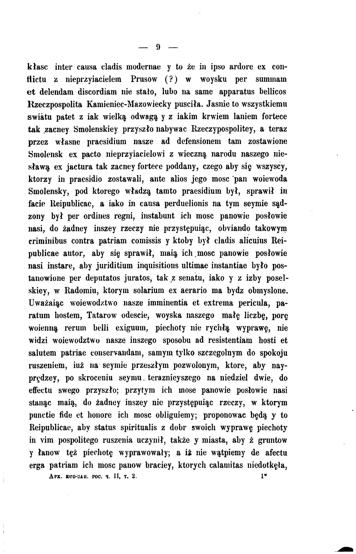 przez w*asne praesidium nasze ad defensionem tam zostawione