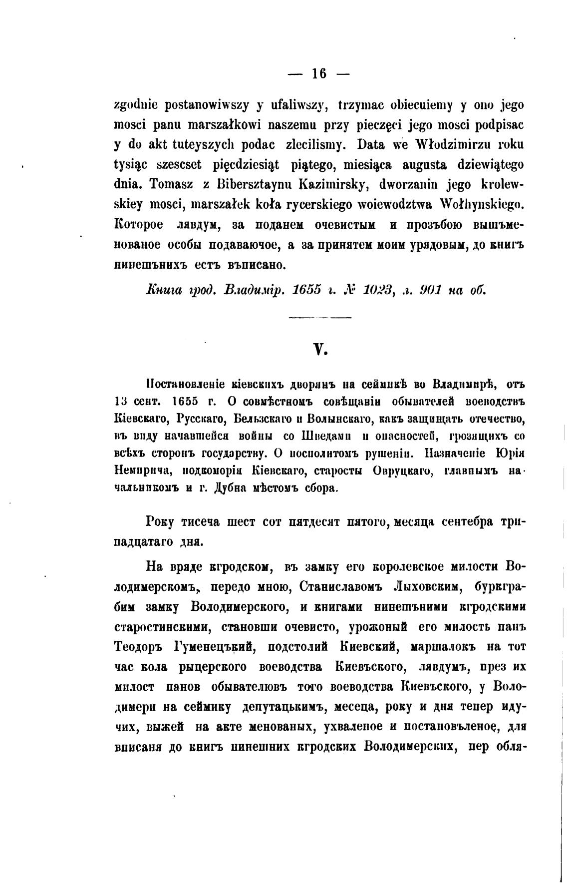 вписаня до ввить нипешних кгродских Володимерских, пер обля-