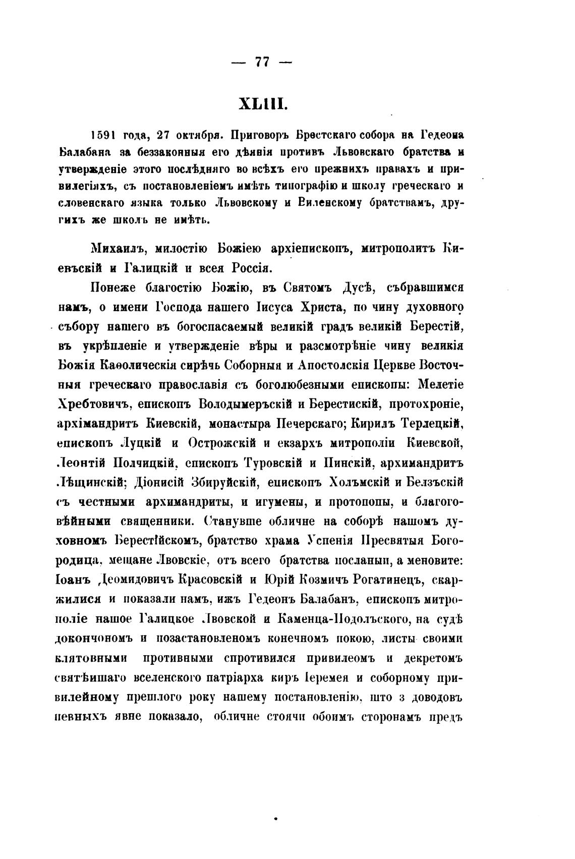 591 года, 27 октября. Приговоръ Брестскаго собора на Гедеоиа
