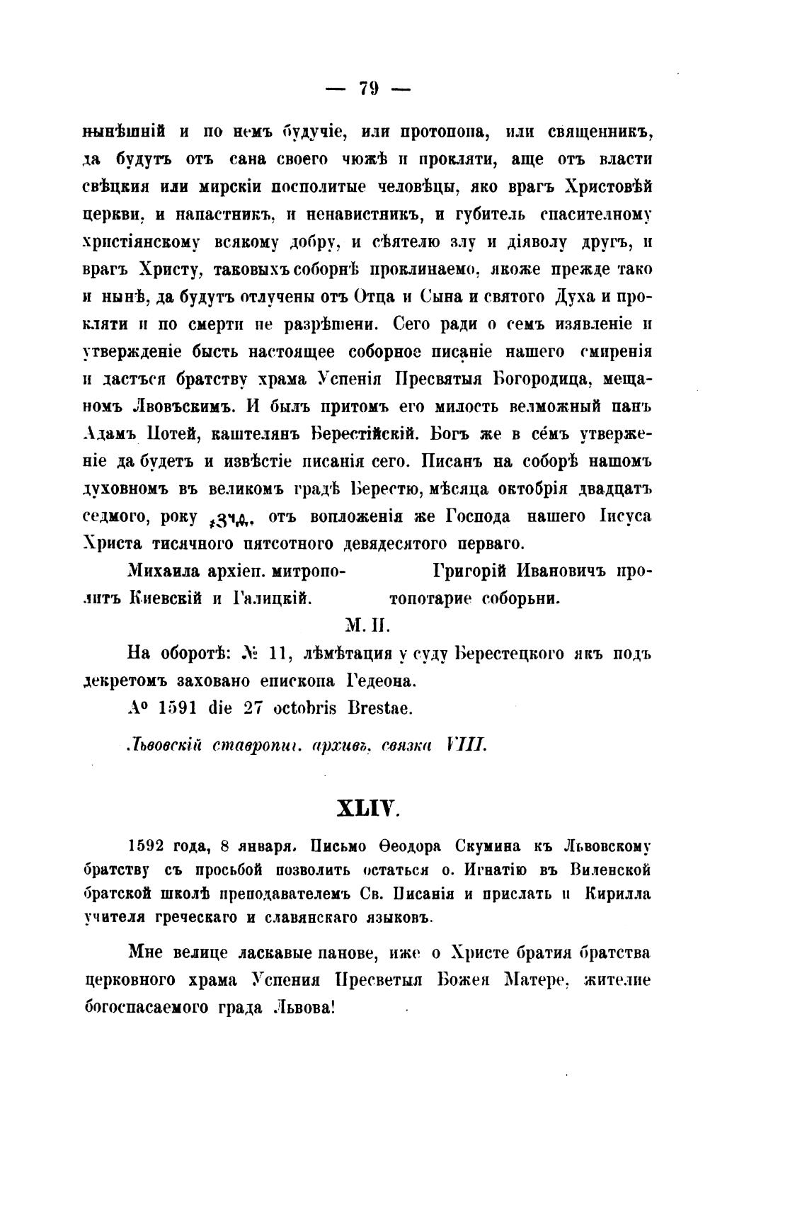 На обороть: Х 11, лгЬАтация у с.уду Берестецкого якъ подъ