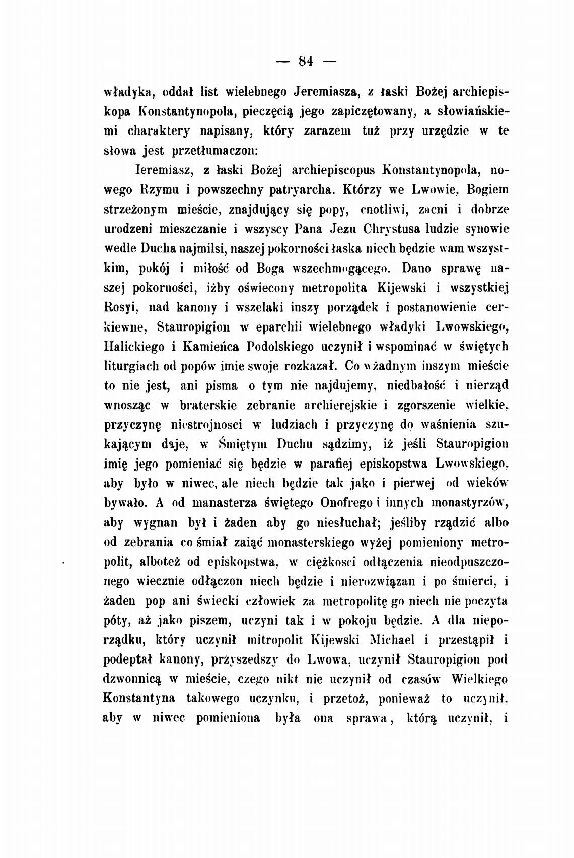 podepta* Капопу, przyszedszy do Lwowa, uczynit Stauropigion pod