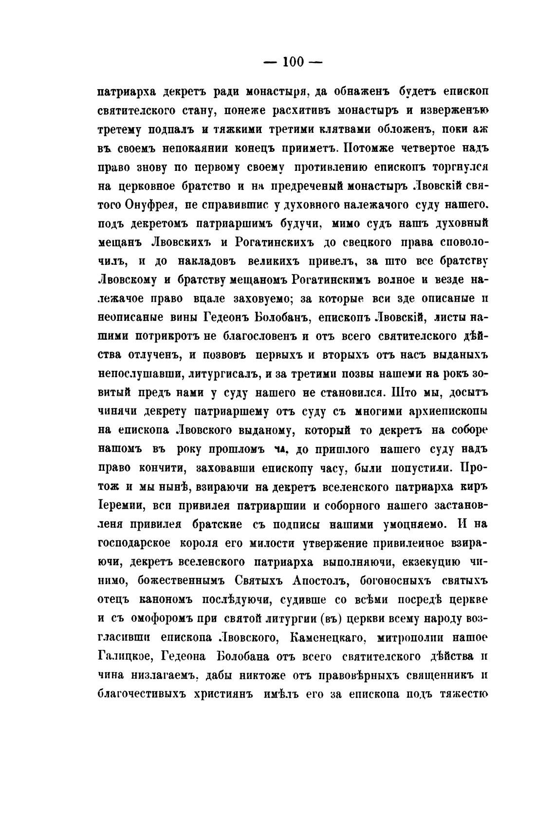 ючи, декретъ вселенского патриарха выполняючи, екзекуцию чи-